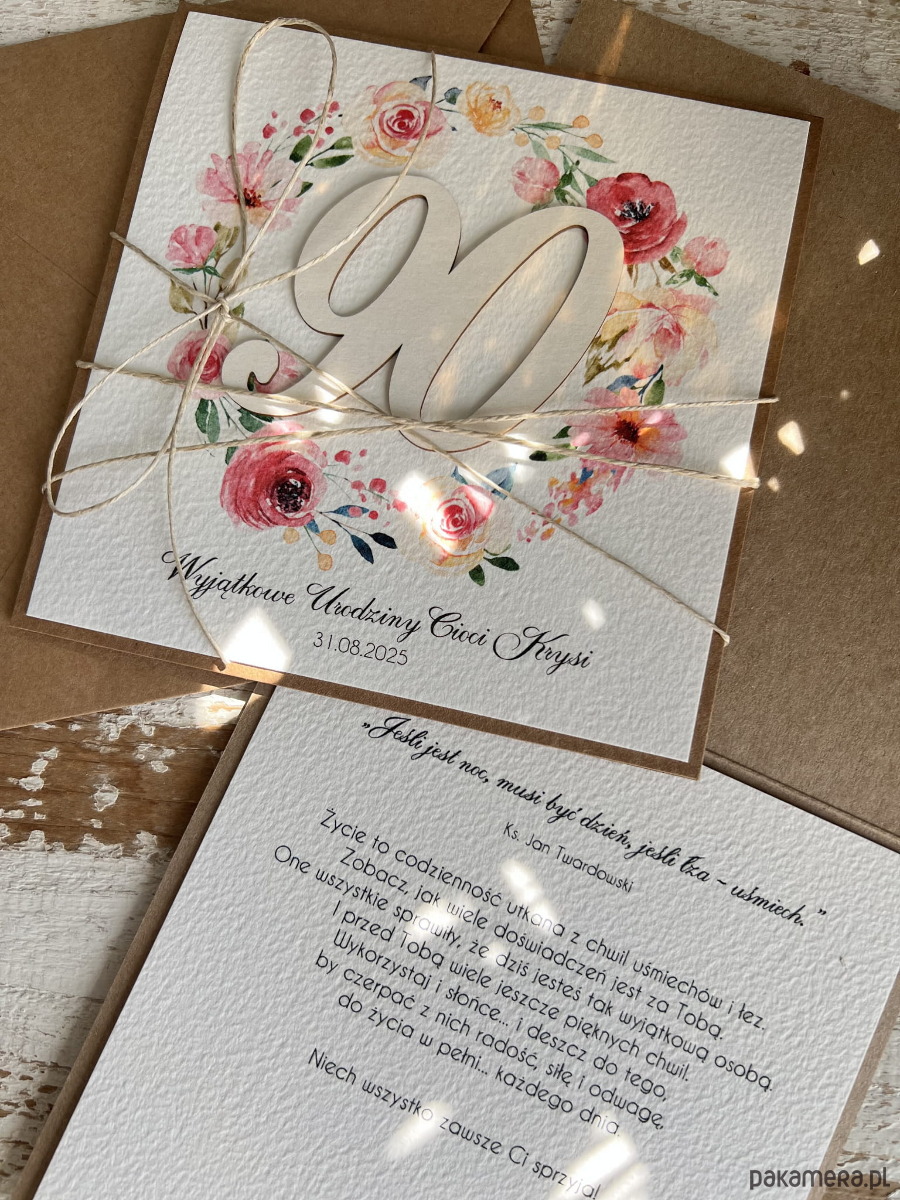 Wyjątkowa personalizowana ręcznie robiona kartka życzenia na 90 urodziny