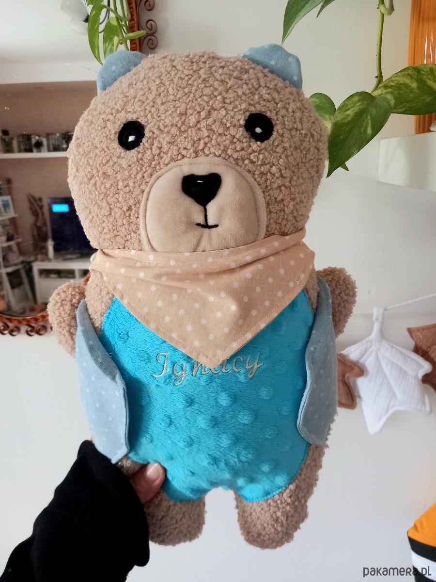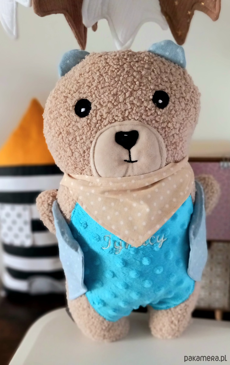 Wyjątkowa przytulanka PODUSZKA MISIO MIŚ boucle HAFT imię dziecka