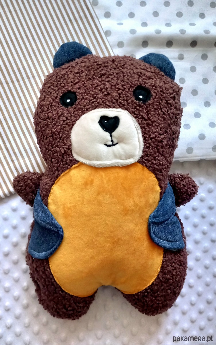 Oczka i nosek z filcu przyszyte maszynowo. Buźka ręcznie wyszywana na pyszczku z minky!