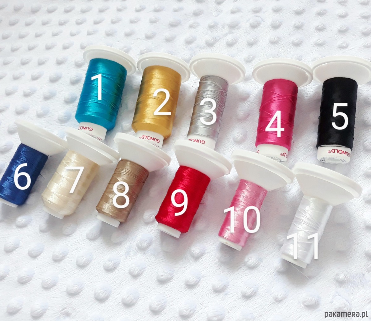 1.Kolor haftu oraz imię dziecka (wysokość haftu 2cm. Kolory nici zostały załączone).