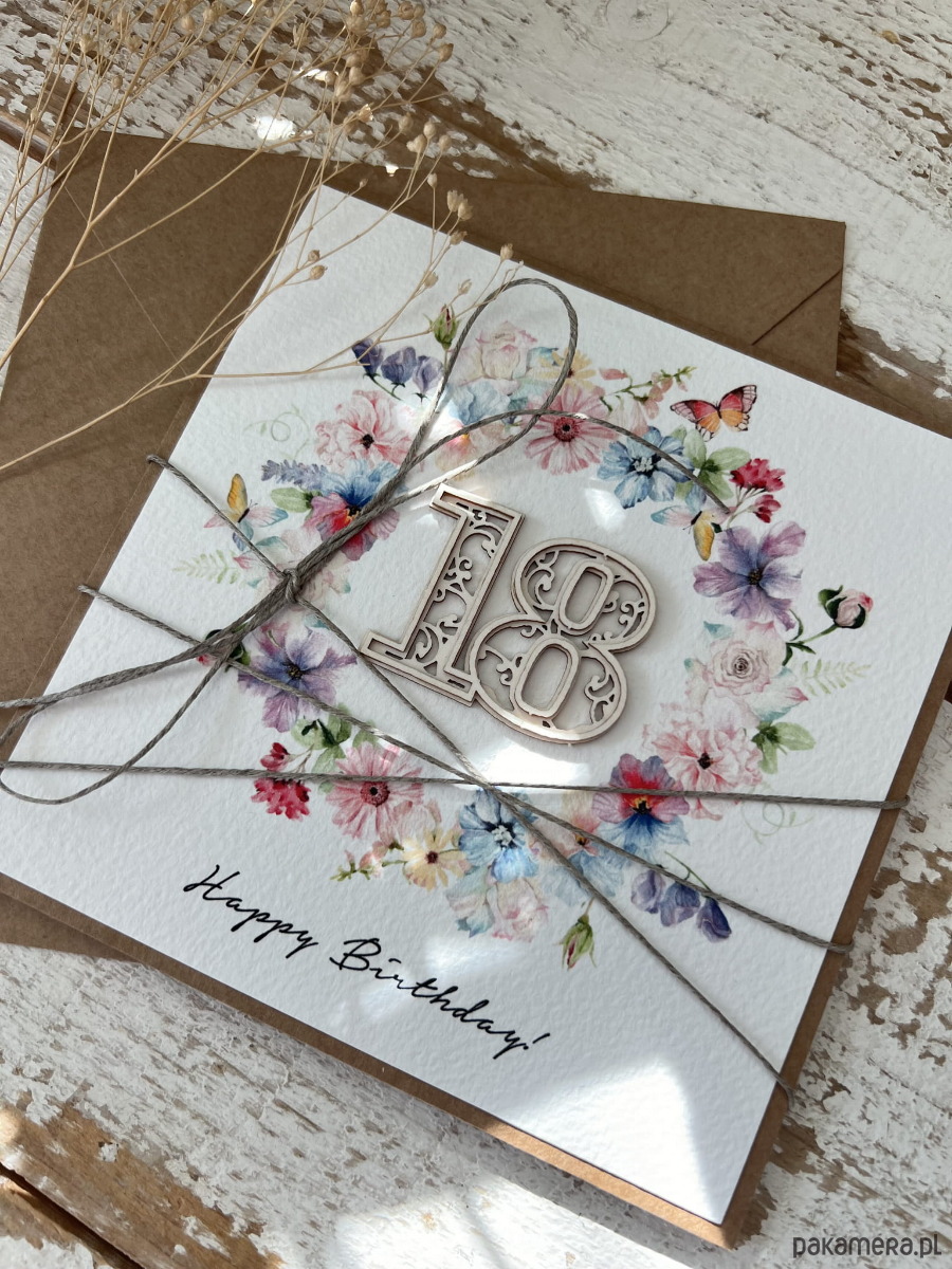 Wyjątkowa ręcznie robiona kartka na 18-ste urodziny, osiemnastka, pomysł na prezent na osiemnastkę Happy Birthday!