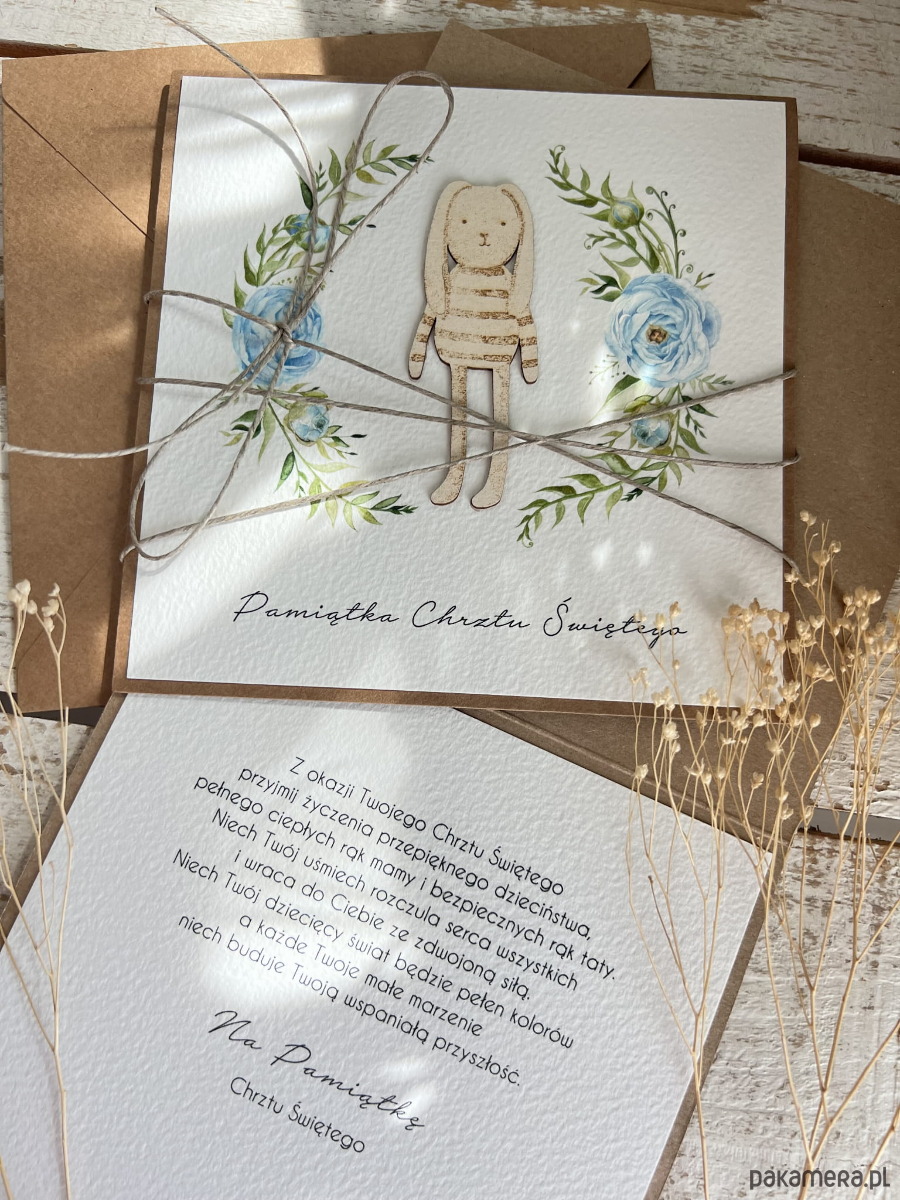 Wyjątkowa ręcznie robiona kartka na chrzest od matki chrzestnej, ojca, dziadk