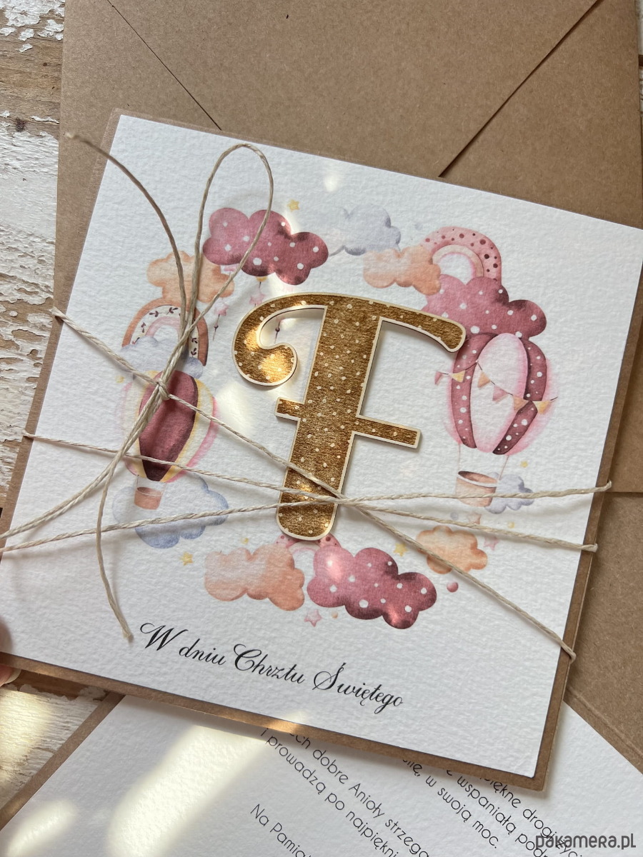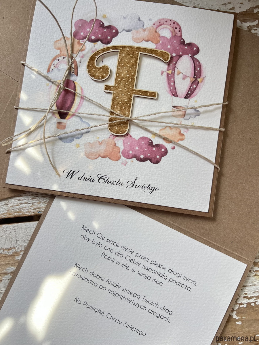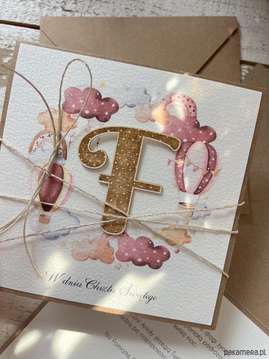 Wyjątkowa ręcznie robiona kartka na chrzest od matki chrzestnej, ojca, dziadków + najpiękniejsze życzenia od serca dla chłopca - pamiątka chrztu z literką F