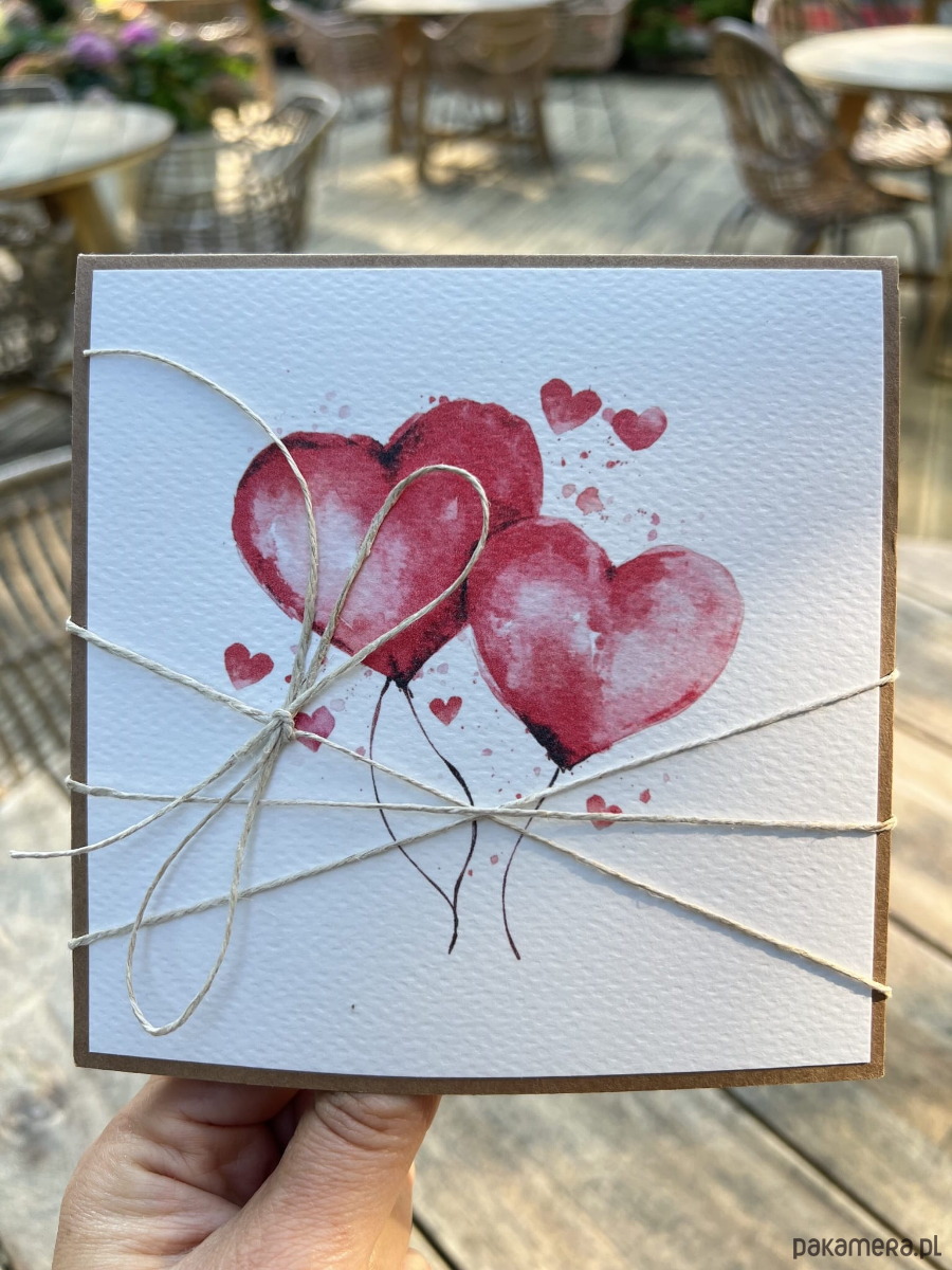 Wyjątkowa ręcznie robiona kartka na walentynki - walentynka z sercem z balona