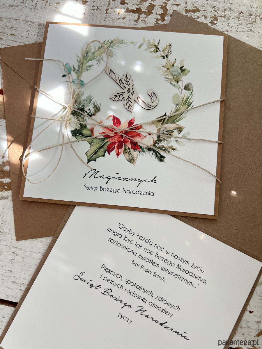 Wyjątkowa ręcznie robiona kartka świąteczna na Boże Narodzenie na piękne życzenia świąteczne - prezent