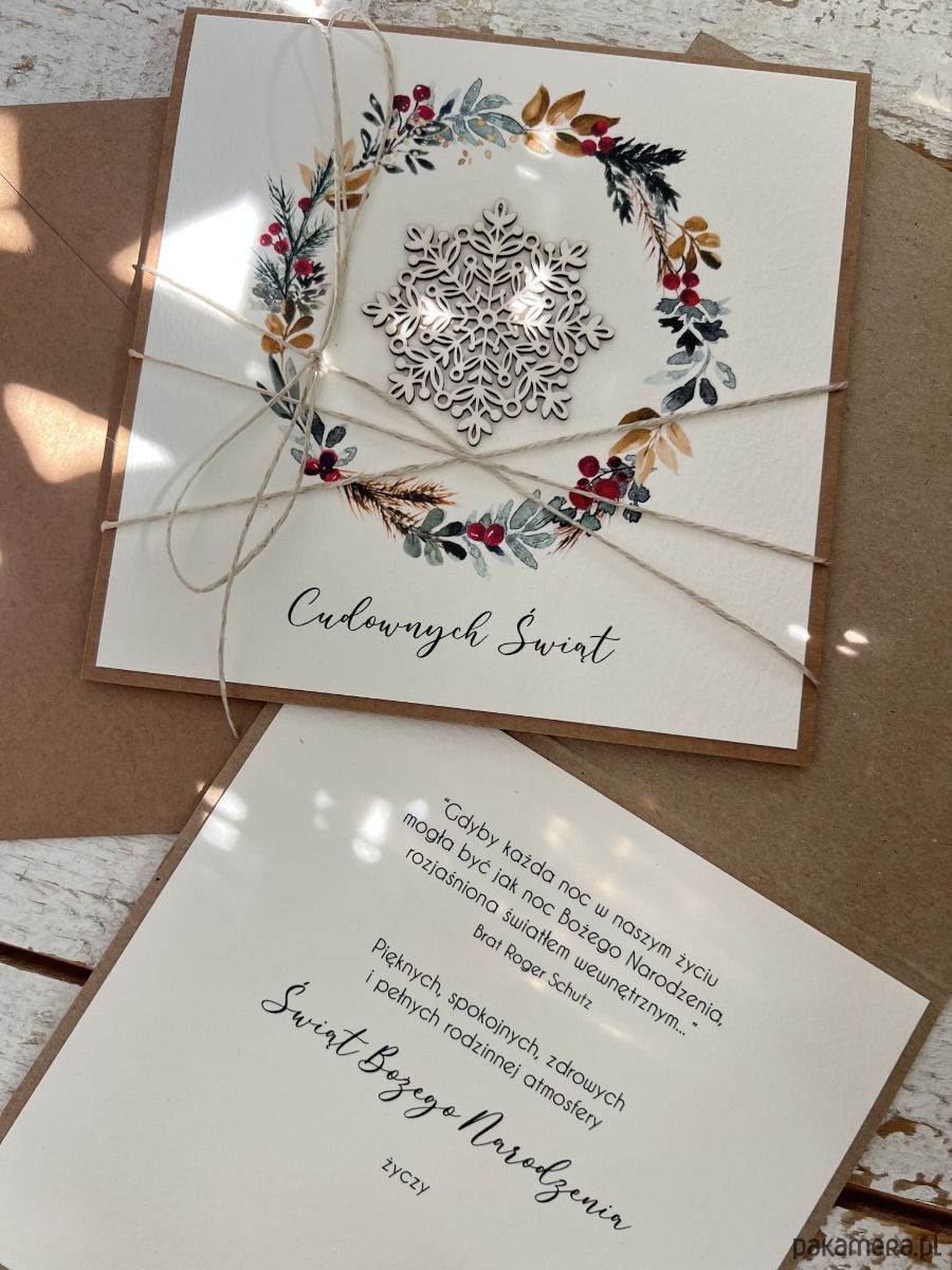 Wyjątkowa ręcznie robiona kartka świąteczna na Boże Narodzenie na piękne życzenia świąteczne - prezent