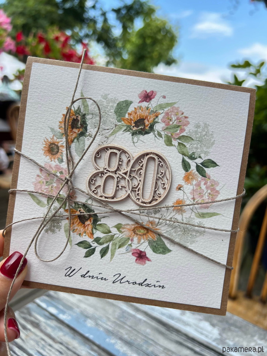 Wyjątkowa ręcznie robiona kartka życzenia na 80 urodziny