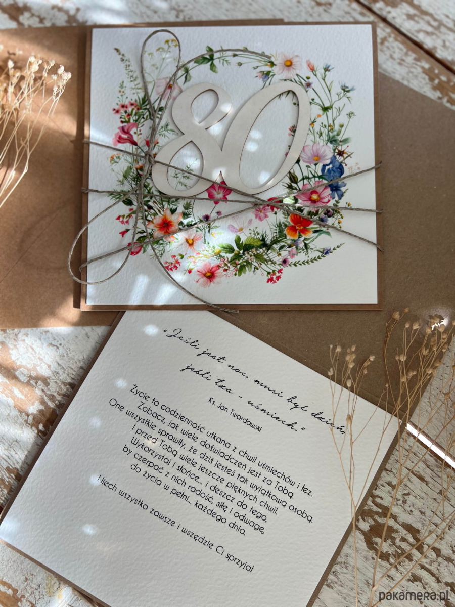 Wyjątkowa ręcznie robiona kartka życzenia na 80 urodziny
