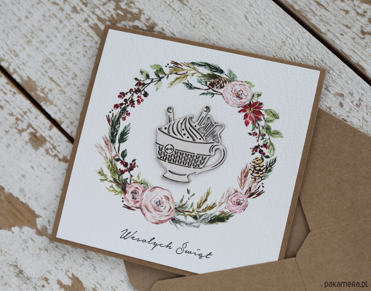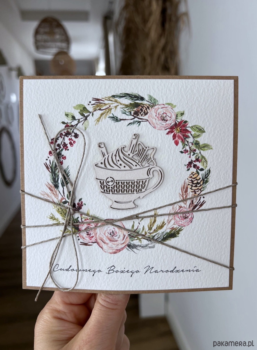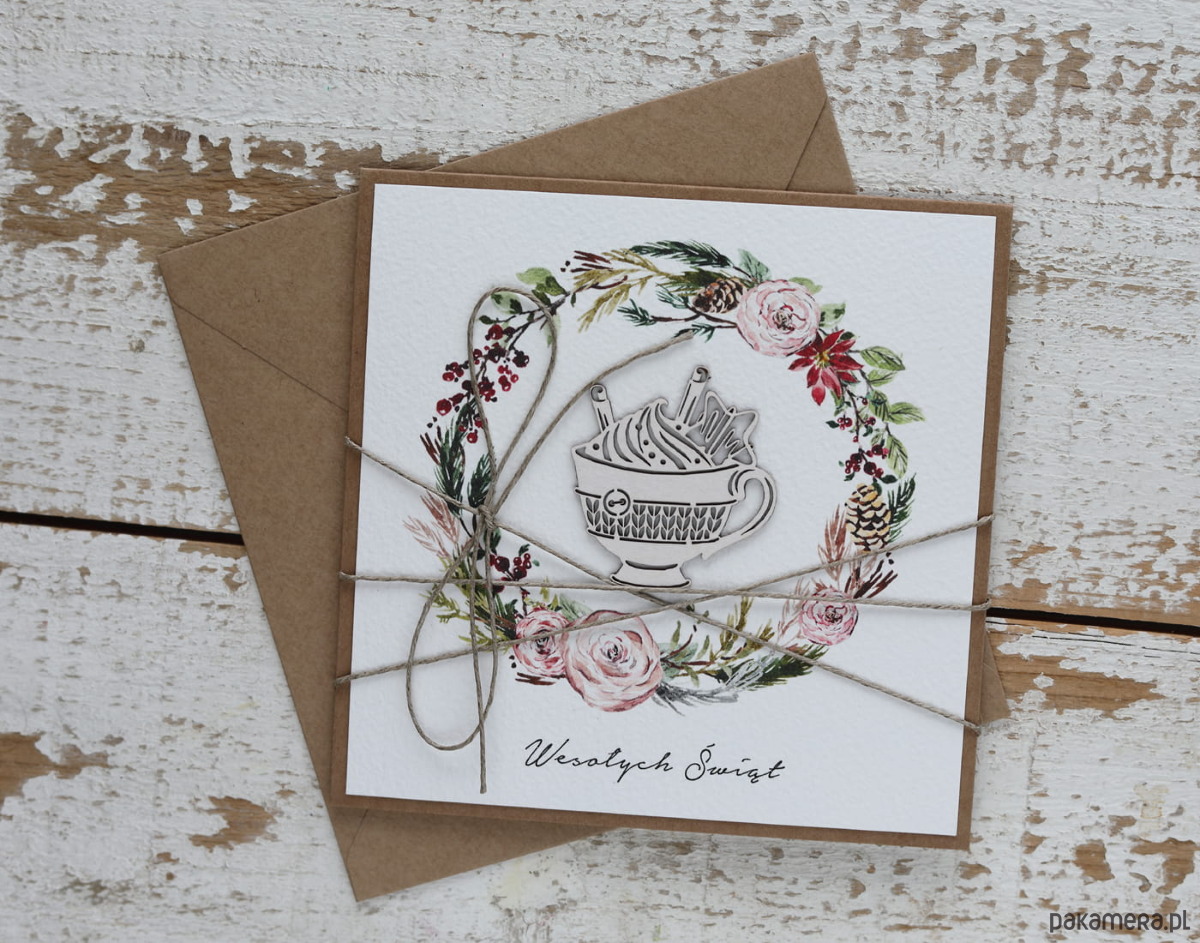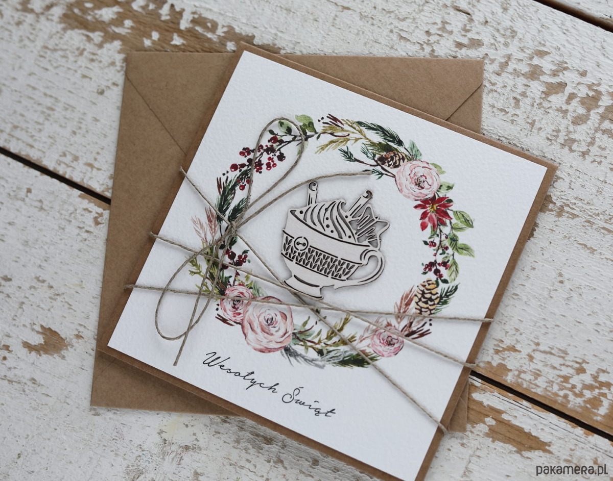 Wyjątkowa stylowa kartka ekologiczna świąteczna + najpiękniejsze życzenia na Boże Narodzenie świąteczny wianek + świąteczny deser - dekoracja