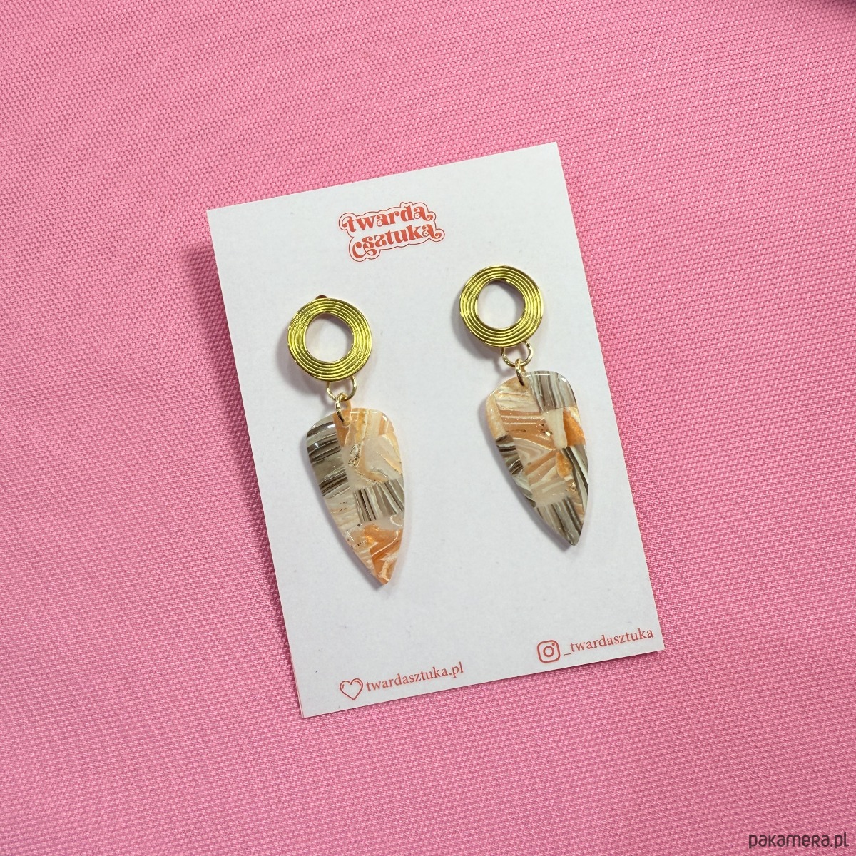 Każdy egzemplarz wykonany jest ręcznie, zapewniając niepowtarzalny charakter. Lekkość materiału sprawia, że kolczyki są wygodne w noszeniu, a staranne wykonanie gwarantuje trwałość i elegancję.