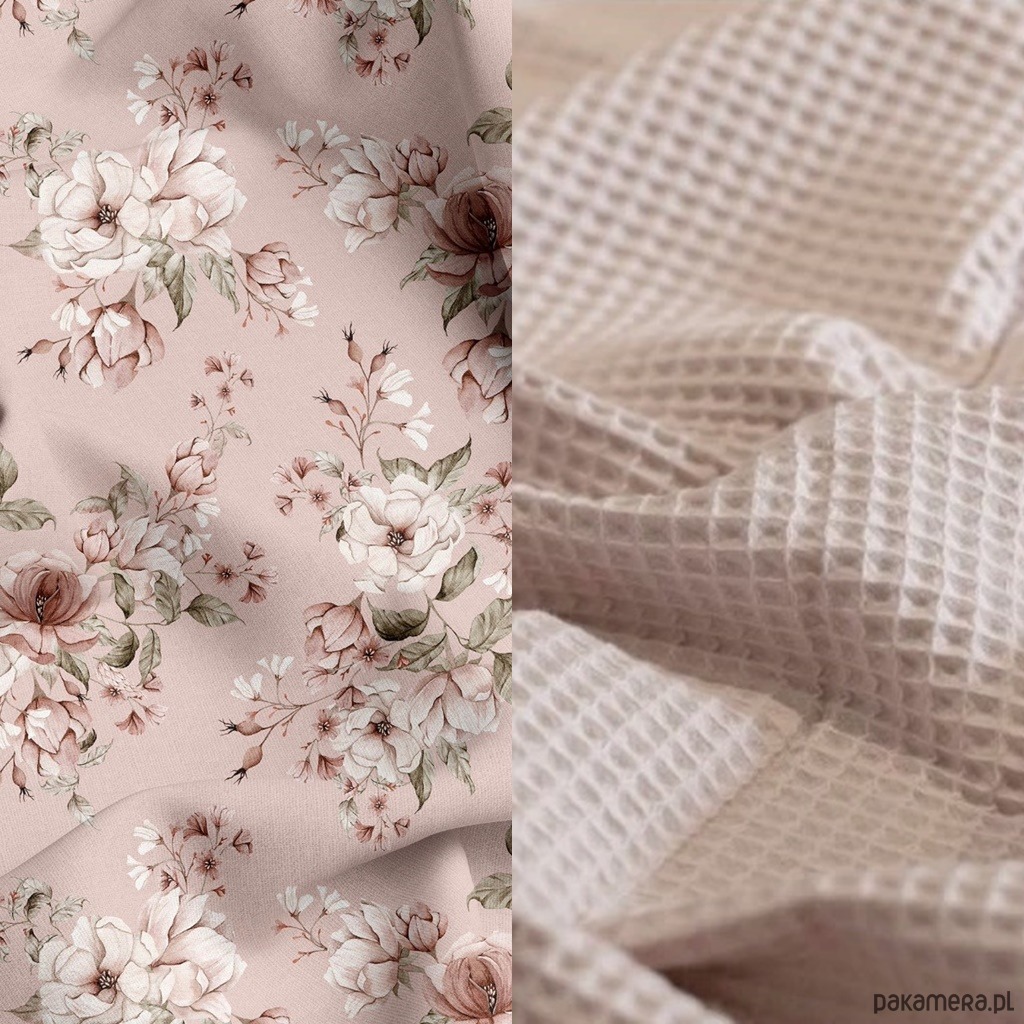 Koc z bawełny premium, z drugiej bawełna wafel (możliwość zamiany na minky lub pikowany velvet), w rozmiarze 155x200 cm