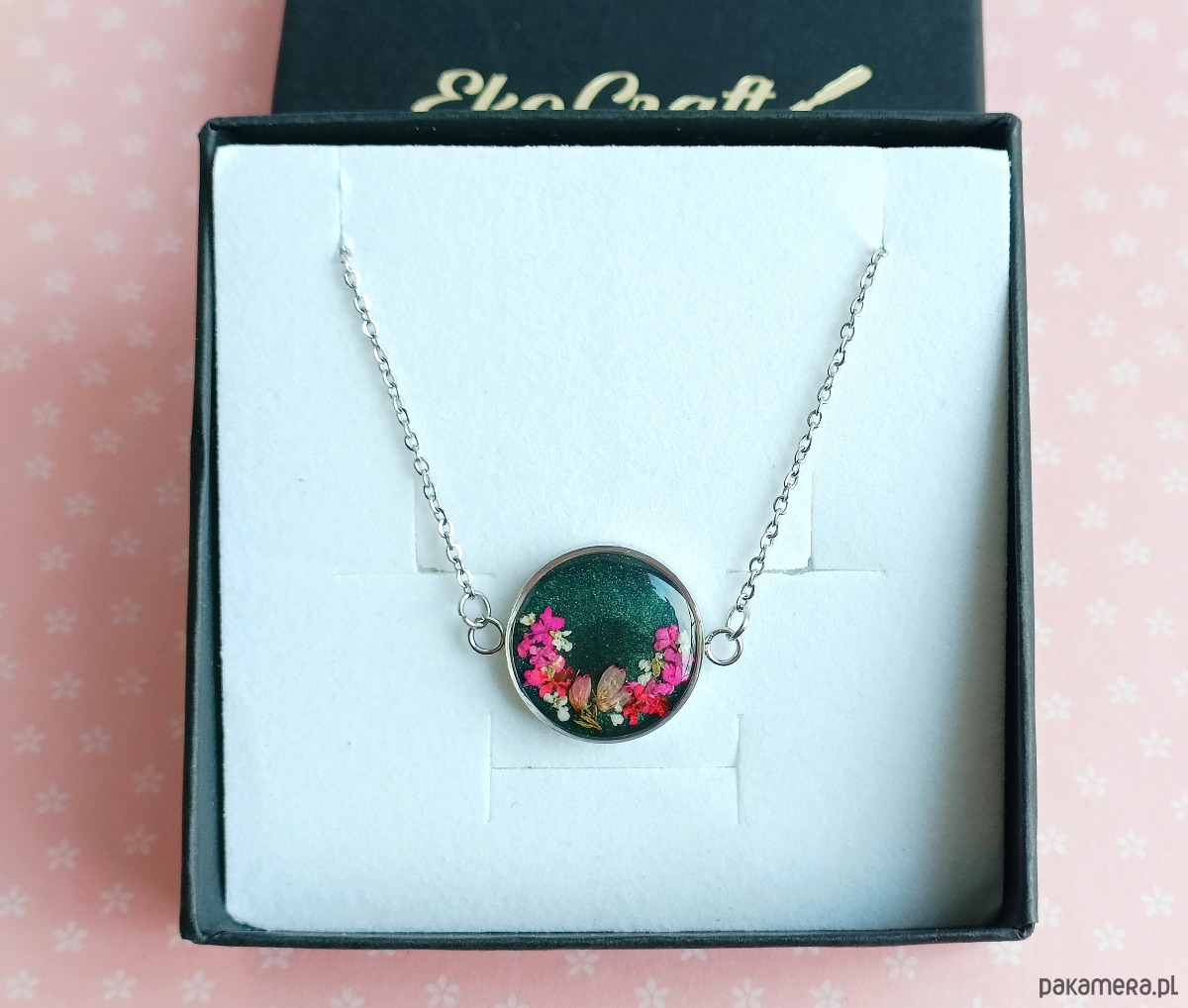 Naszyjnik pakowany w eleganckie pudełko z logo EkoCraft.