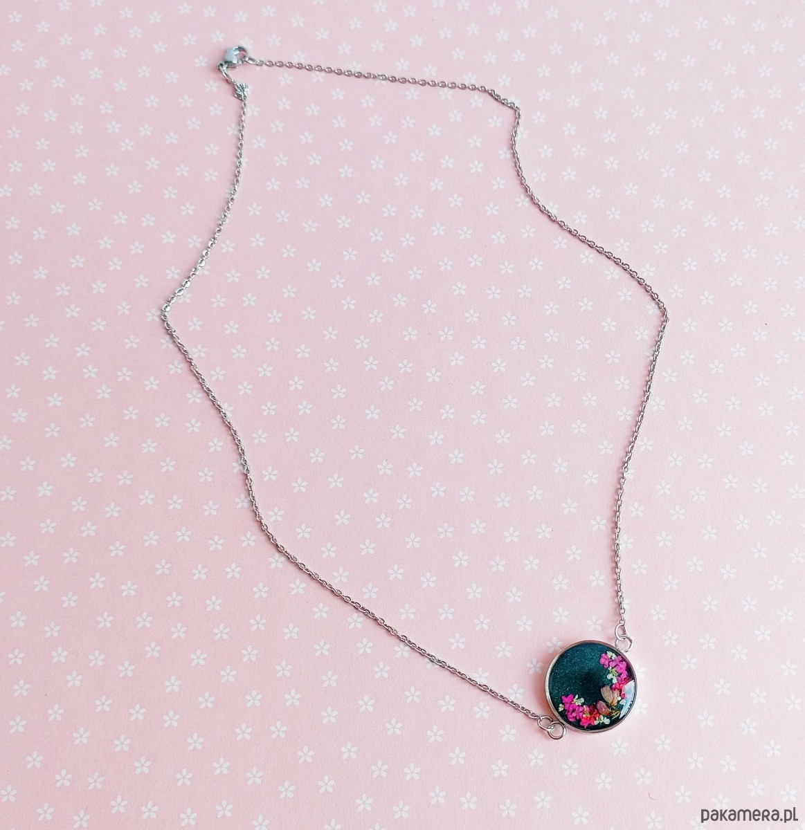 Piękny kwiatowy, unikatowy naszyjnik ze stali chirurgicznej.