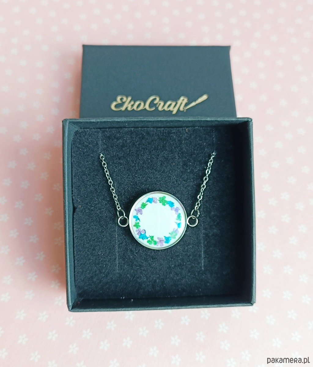 Naszyjnik pakowany w eleganckie pudełko z logo EkoCraft.