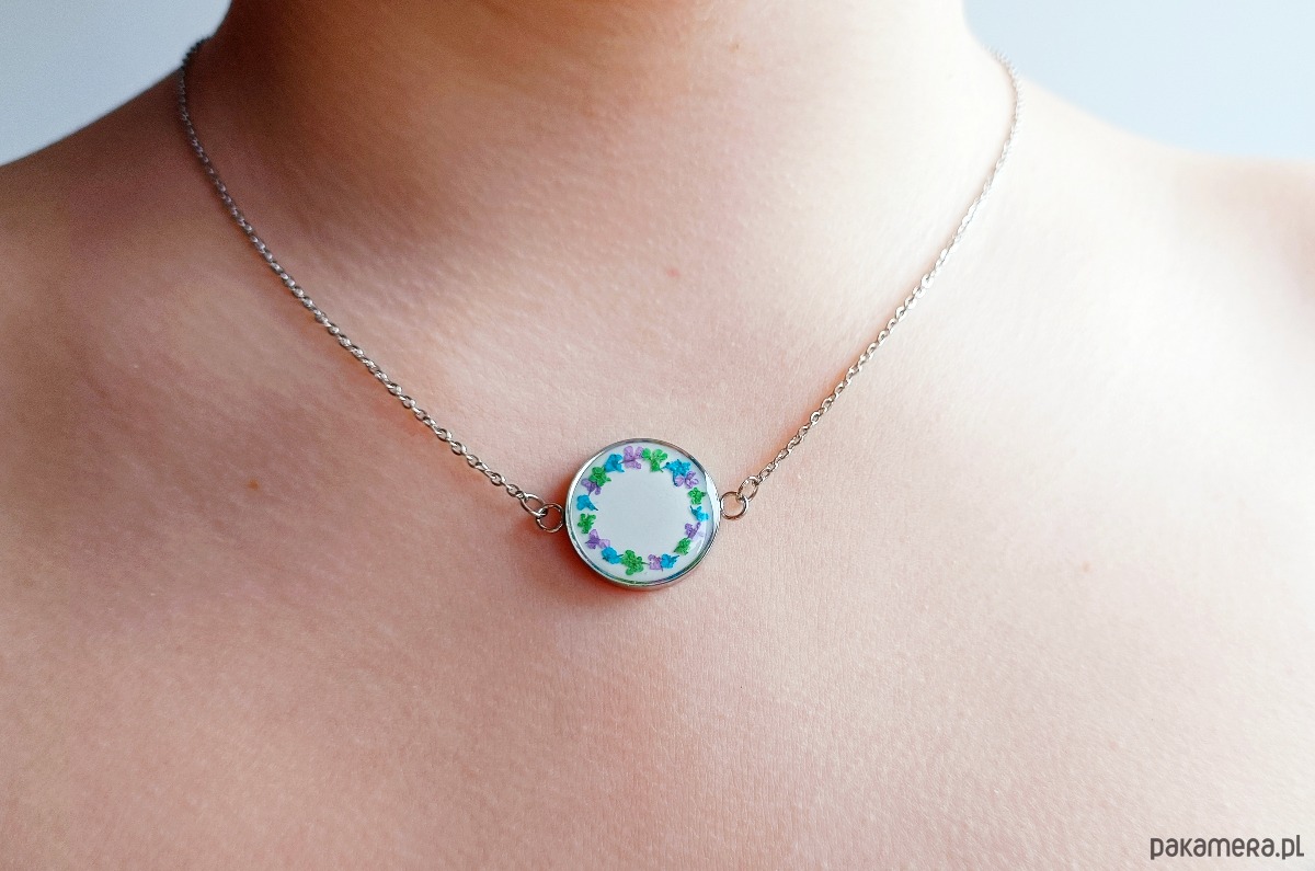 Piękny kwiatowy, unikatowy naszyjnik ze stali chirurgicznej.