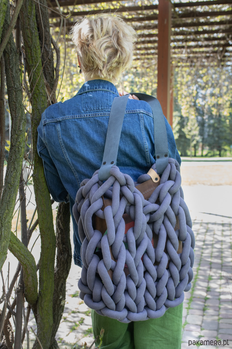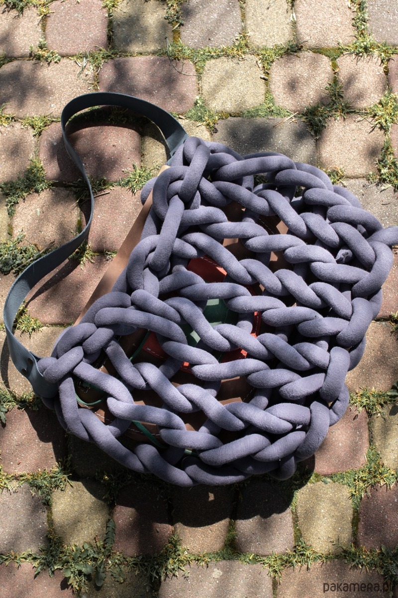 Worek wyplatany ręcznie ze sznurka bawełnianego wypełnionego polyamidem,