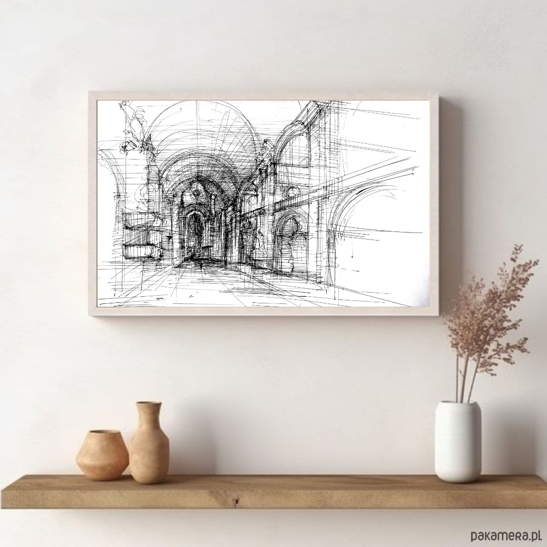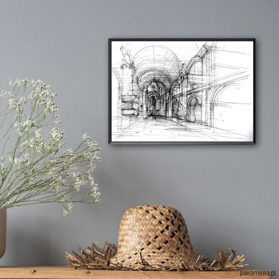 WYPRZEDAŻ RYSUNKÓW! Rysunek Collegium Maius Kraków 35x50 cm Pióro