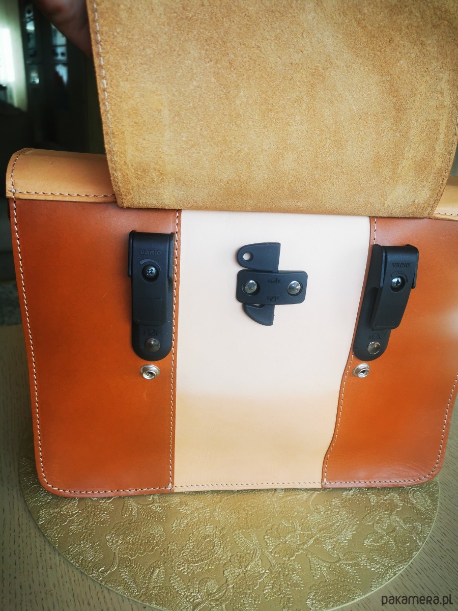 Sakwa składa się z głównej kieszeni, wyposażonej w dodatkowy organizer na telefon, długopisy, klucze. W przedniej części pod klapą znajduje się również kieszeń zapinana na napy. Dodatkowo torba jest wyposażona w regulowany pas nośny na ramię przymocowany wysokiej jakości karabińczykami ze stali nierdzewnej, dzięki czemu może być wykorzystywana jako solidna torba na ramię, gdy akurat nie jedziemy rowerem.