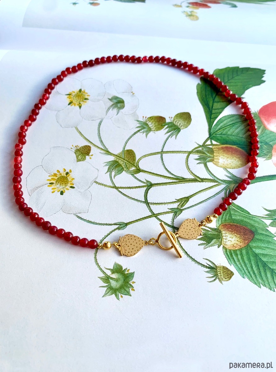 Wyprzedaż! Truskawki i kwarc- Naszyjnik- Truskawki