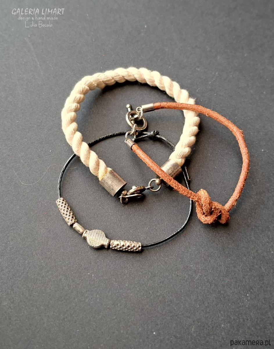 - Materiał: skóra, sznurek, stop metali, mosiądz, miedź
