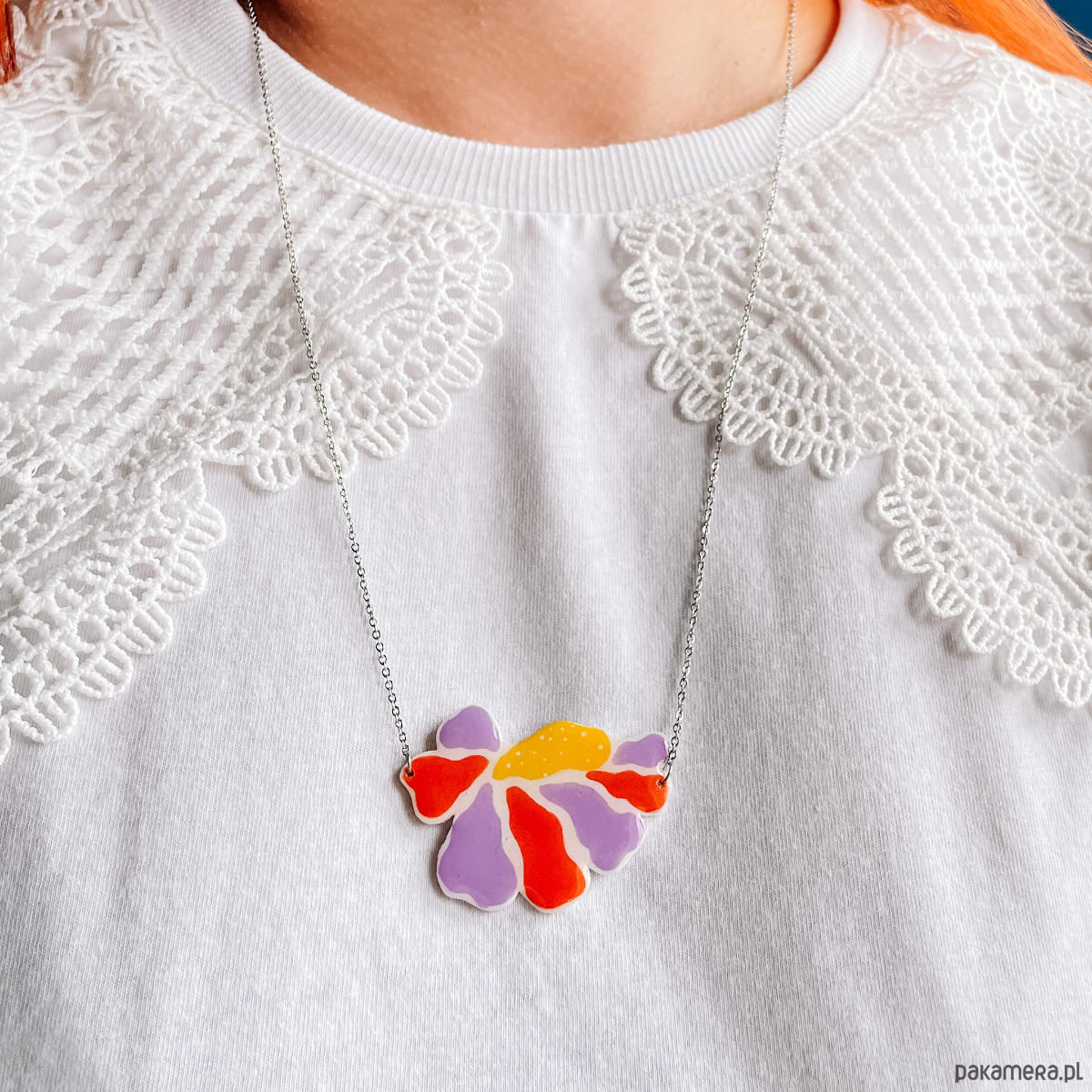 Wyrazisty naszyjnik z motywem kwiatowym - kolorowa biżuteria handmade boho