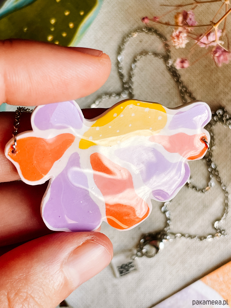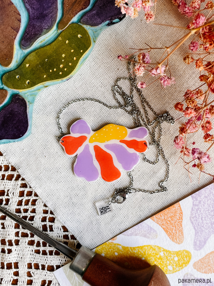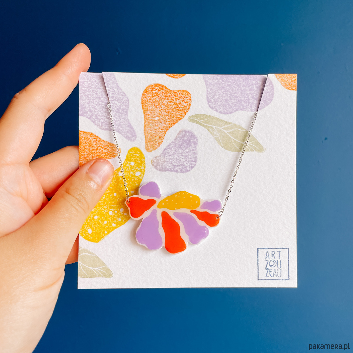 Naszyjnik jest bardzo lekki i wygodny w noszeniu, bo powstał z tworzywa typu shrink plastic. Każdy egzemplarz wykonuję ręcznie, dlatego nie ma dwóch identycznych - drobne różnice w kształcie czy kolorach są naturalnym efektem pracy manualnej i sprawiają, że każdy naszyjnik jest naprawdę wyjątkowy.