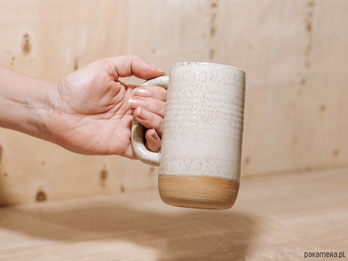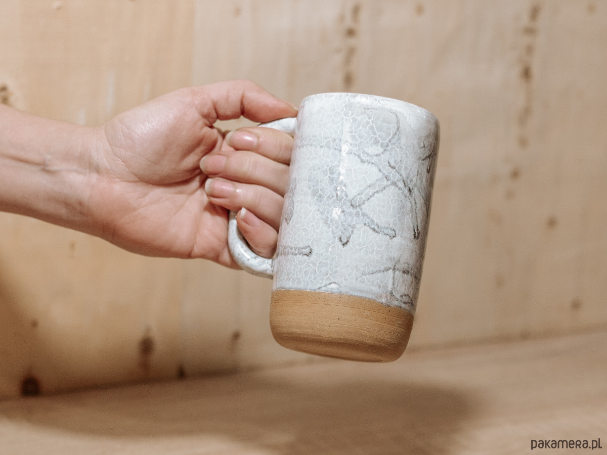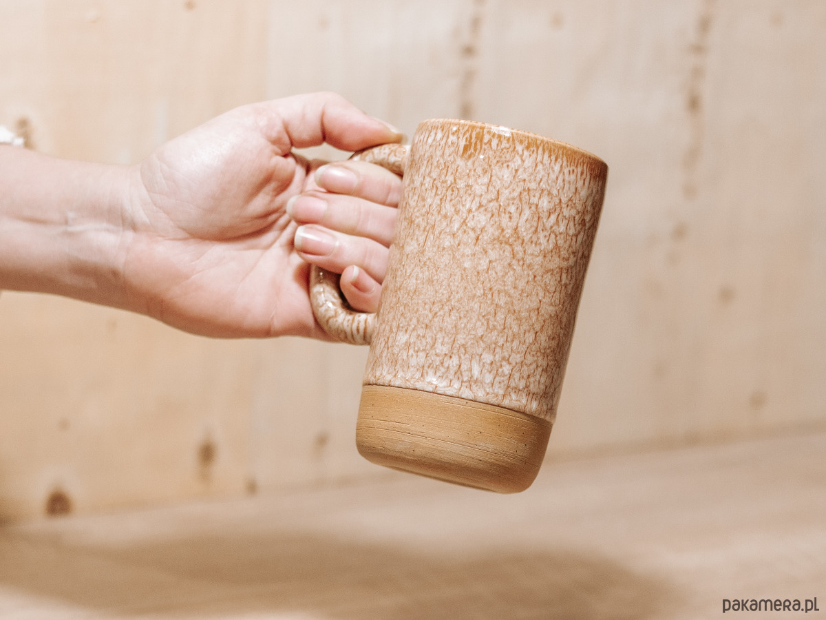 Spód tego kubka jest odsłonięty i ukazuje naturalny kolor gliny.