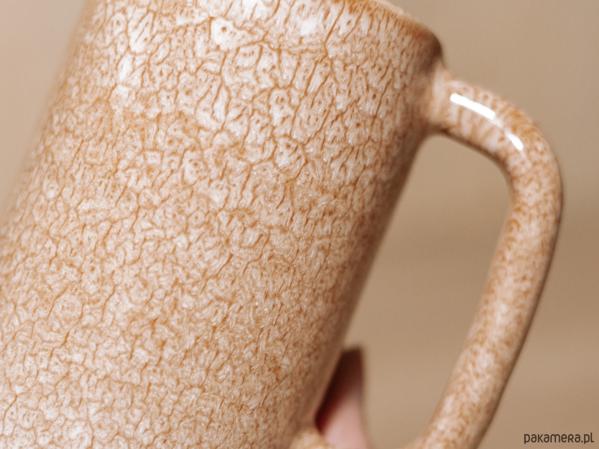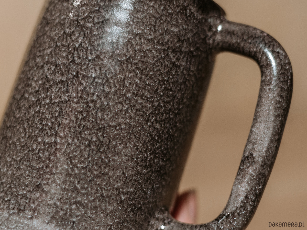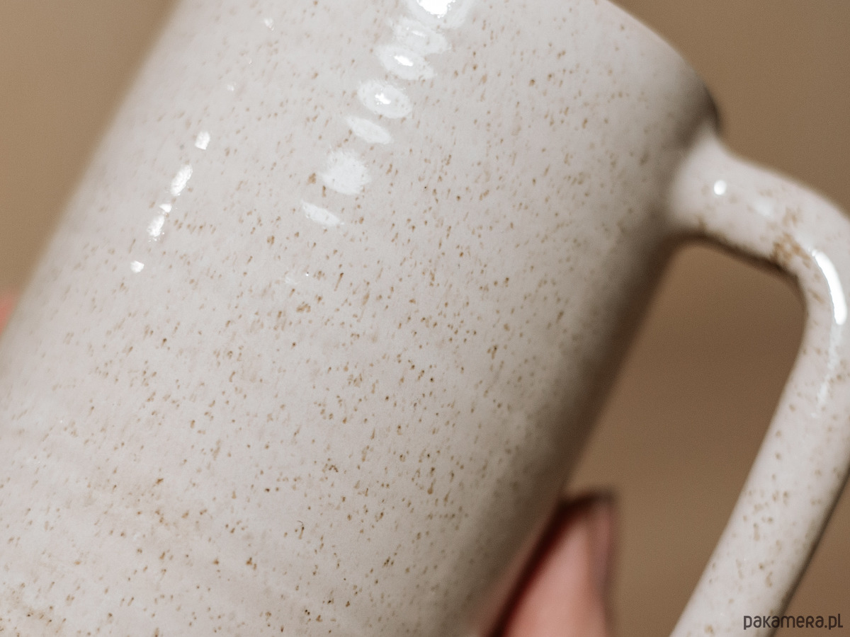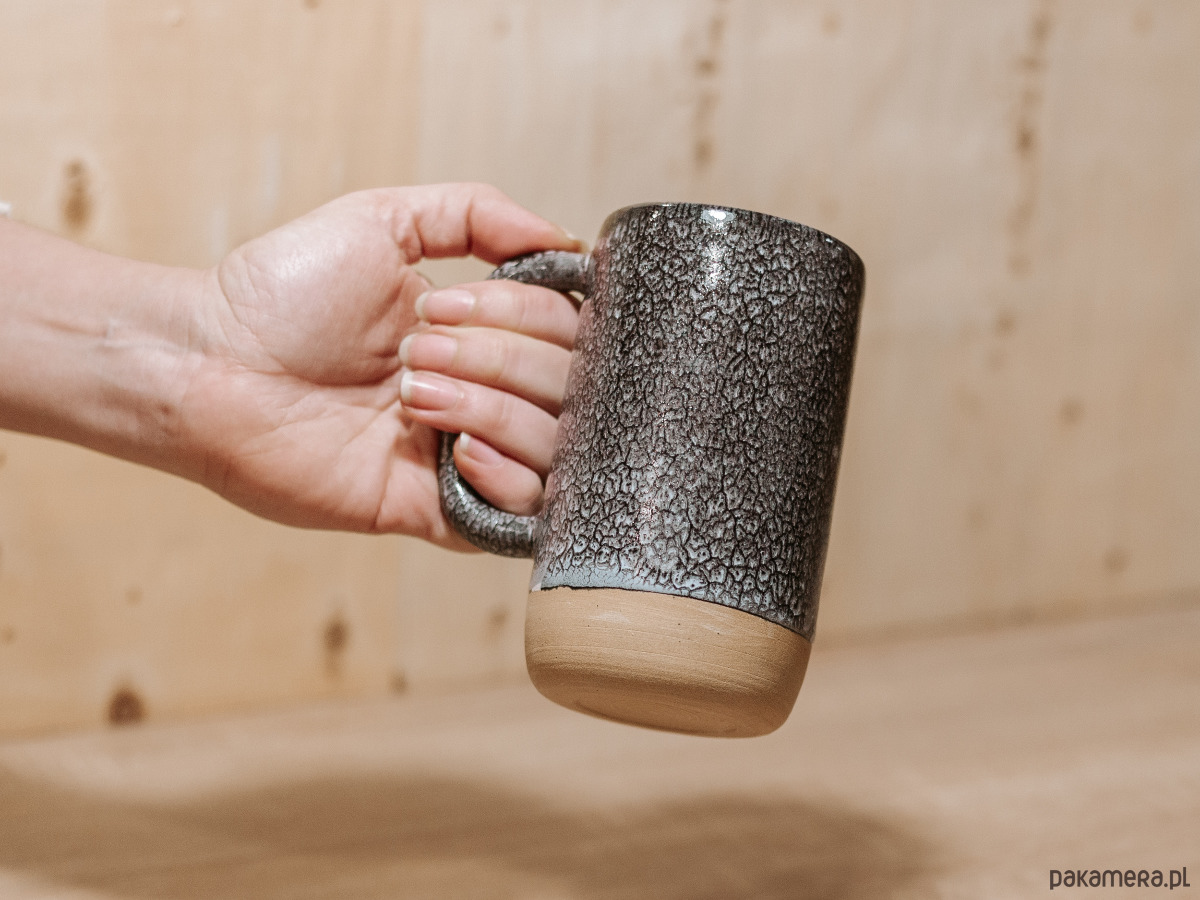Spód tego kubka jest odsłonięty i ukazuje naturalny kolor gliny.