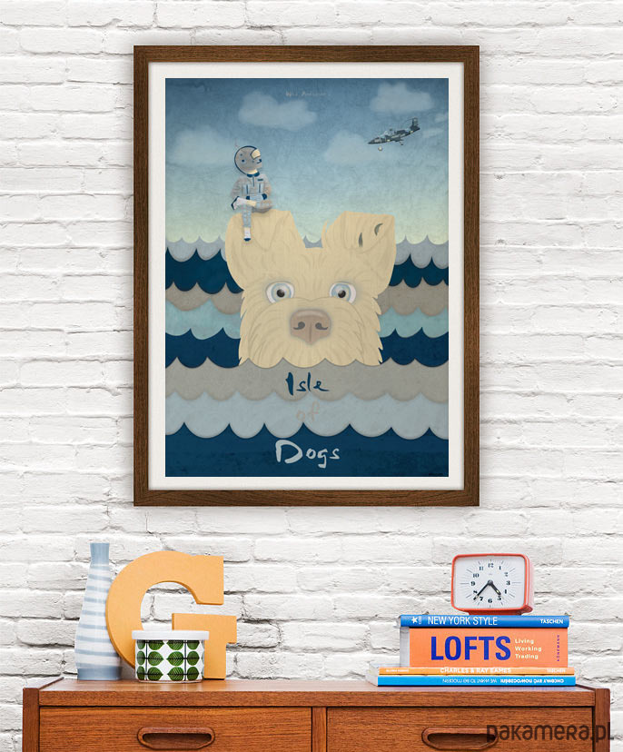 Plakat z autorską grafiką inspirowany filmem Wyspa psów (Isle of Dogs), reż. Wes Anderson.