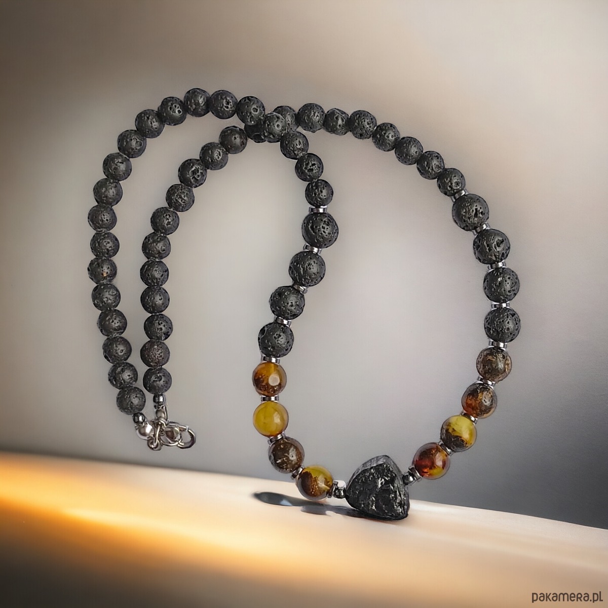 WYSYŁKA 24h - BURSZTYN, lawa, TURMALIN - naszyjnik