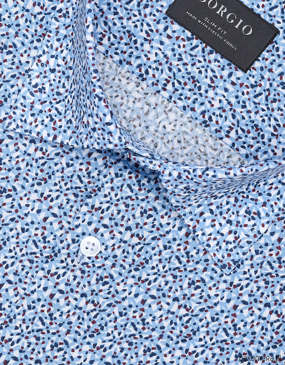 Wzorzysta koszula męska 00345 dł rękaw niebieska slim