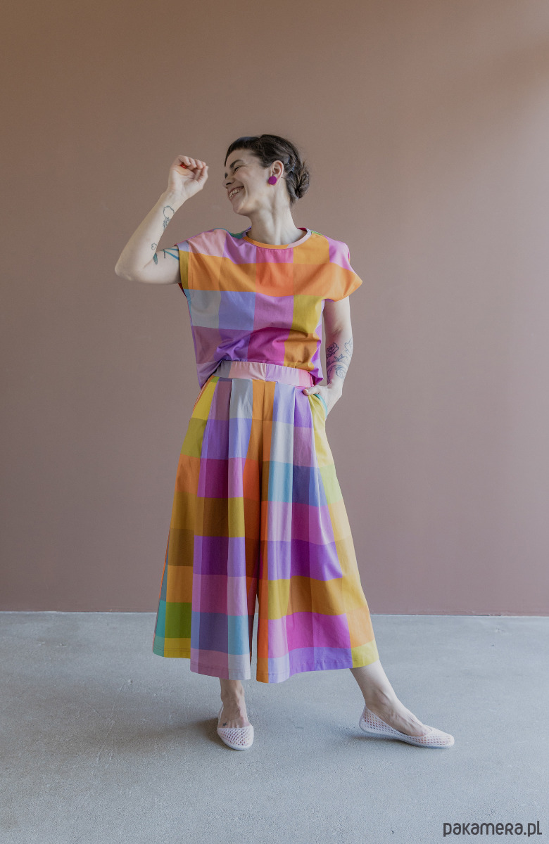 Spódnico-spodnie to uniwersalna baza wielu stylizacji. Zestaw je z T-shirtem, lnianą koszulą lub ulubionymi sandałkami. Dostępne są w kilku kolorach i wzorach. Wybierz swój ulubiony i noś tak, jak chcesz.