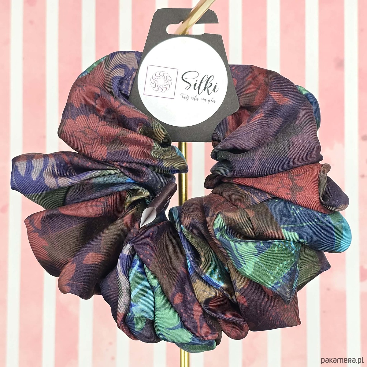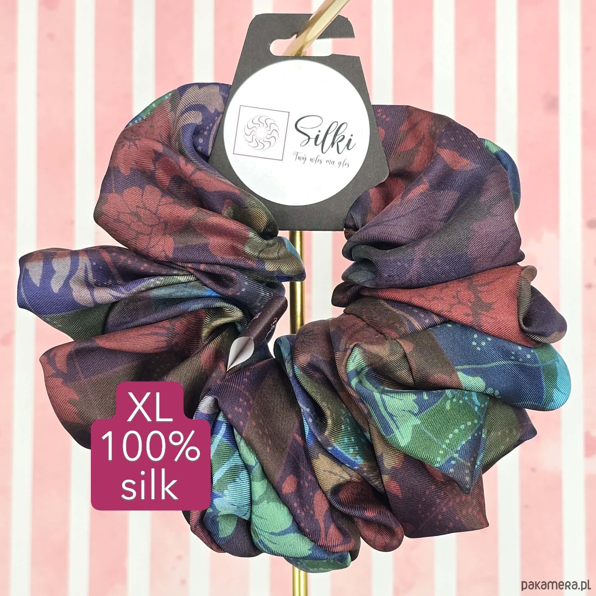 XL duża gumka do włosów jedwab naturalny scrunchie brązowa kolorowa