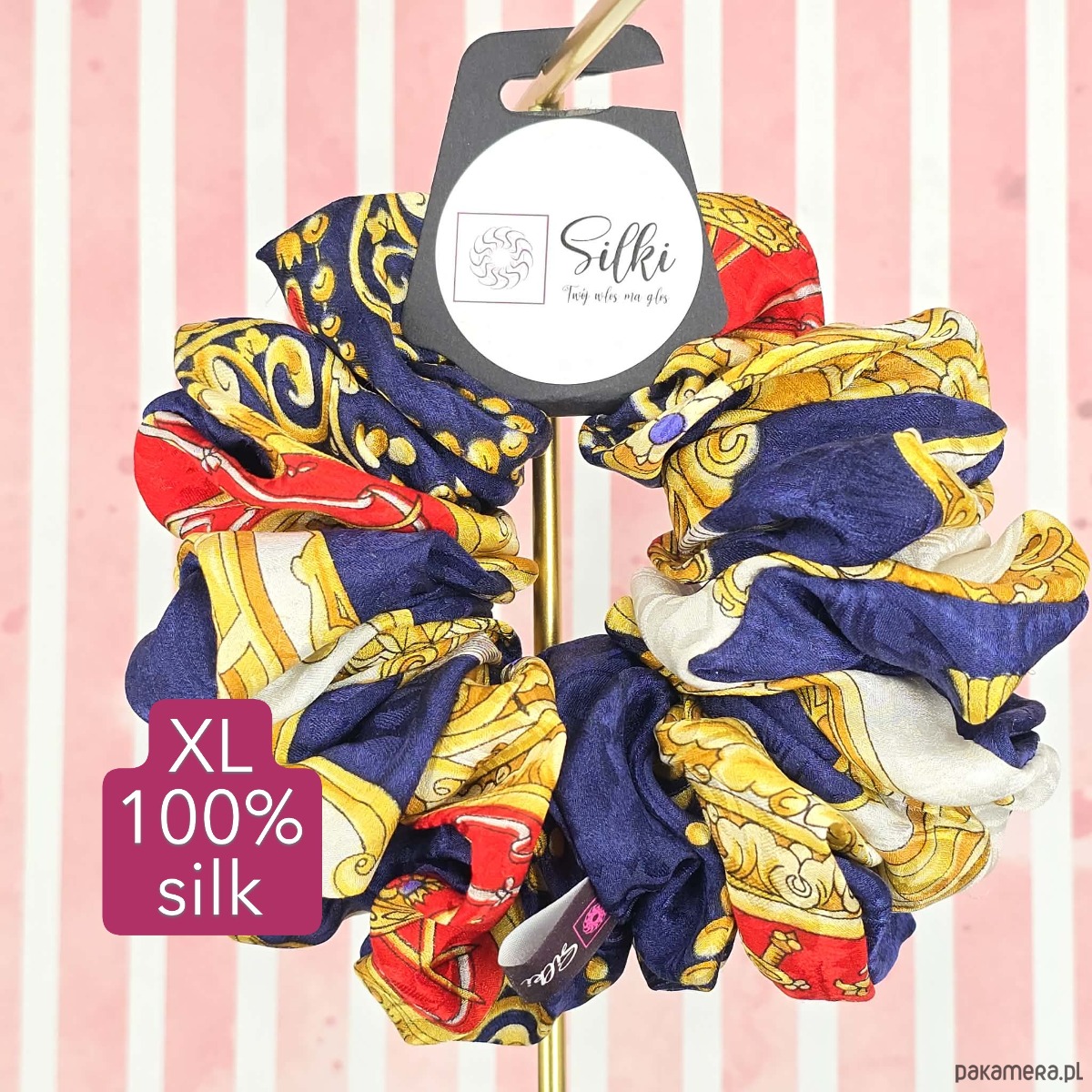 XL duża gumka do włosów jedwab naturalny scrunchie granatowa kolorowa