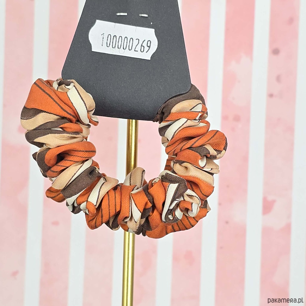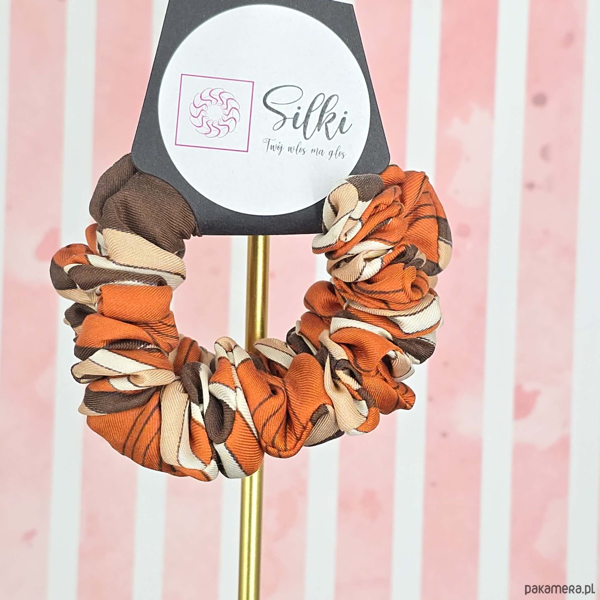XS mini mała gumka dla dzieci do włosów jedwab naturalny scrunchie brązowa