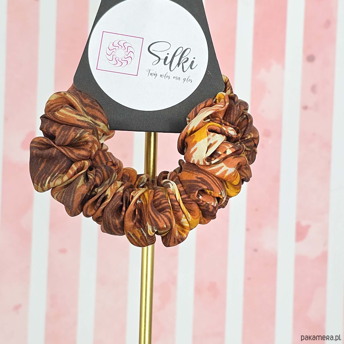 XS mini mała gumka dla dzieci do włosów jedwab naturalny scrunchie brązowe