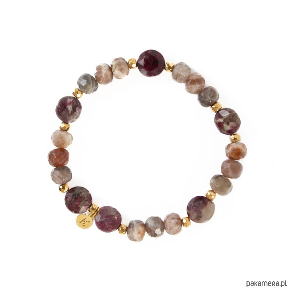 Bransoletka z Turmalinem bordowy i kamieniem życia - Wersja Pozłacana