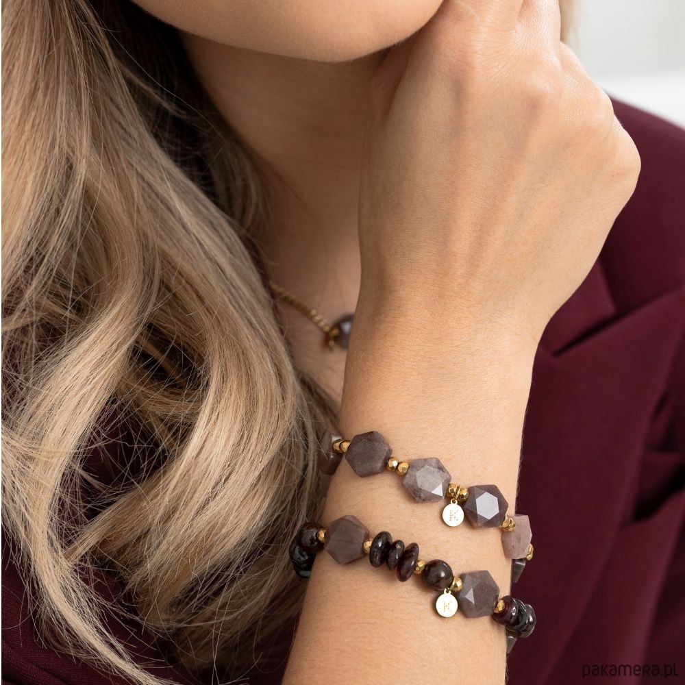 Bransoletka wykonana z naturalnego brązowego Awenturynu to subtelna biżuteria o głębokim znaczeniu. Kamień ten nazywany jest kamieniem równowagi i wewnętrznego spokoju – symbolizuje stabilność, harmonię i pewność siebie. Pomaga łagodzić napięcie, wzmacnia koncentrację i dodaje energii do realizacji celów. Ciepłe, ziemiste odcienie brązowego Awenturynu tworzą elegancką, naturalną kompozycję, która doskonale komponuje się z każdym typem urody. Bransoletka została wykończona drobnymi akcentami Hematytu w wersji złotej lub srebrnej, dzięki czemu zyskuje nowoczesny charakter i subtelny połysk. To biżuteria, która nie tylko zdobi, ale również wspiera – przypomina o sile spokoju, równowadze emocjonalnej i stabilności. Idealna zarówno na co dzień, jak i jako elegancki akcent podkreślający Twój indywidualny styl. Znaczenie kamieni: Hematyt to kamień wojowników. Silnie oczyszcza krew. Budzi radość do życia, dodaje odwagi i wiary we własne umiejętności. Awenturyn to kamień nowych możliwości. Awenturyn pobudza umysł do myślenia poza schematami i zachęca do działania. Jest on jak magiczny klucz otwierający drzwi do nowych możliwości i pomysłów. To co w jednym momencie wydawało się niemożliwe, staje się możliwe, gdy Awenturyn znajduje się blisko. Każda bransoletka różni się nieco od siebie, ponieważ nie ma dwóch takich samych kamieni. Dla klienta wybieramy kamienie z wielką starannością, zawsze intuicyjnie. Wymiary: Kamienie: Hematyt/Awenturyn Wielkość kamieni: 4mm/12mm Blaszka z logo: 6mm Materiał: antyalergiczna stal chirurgiczna