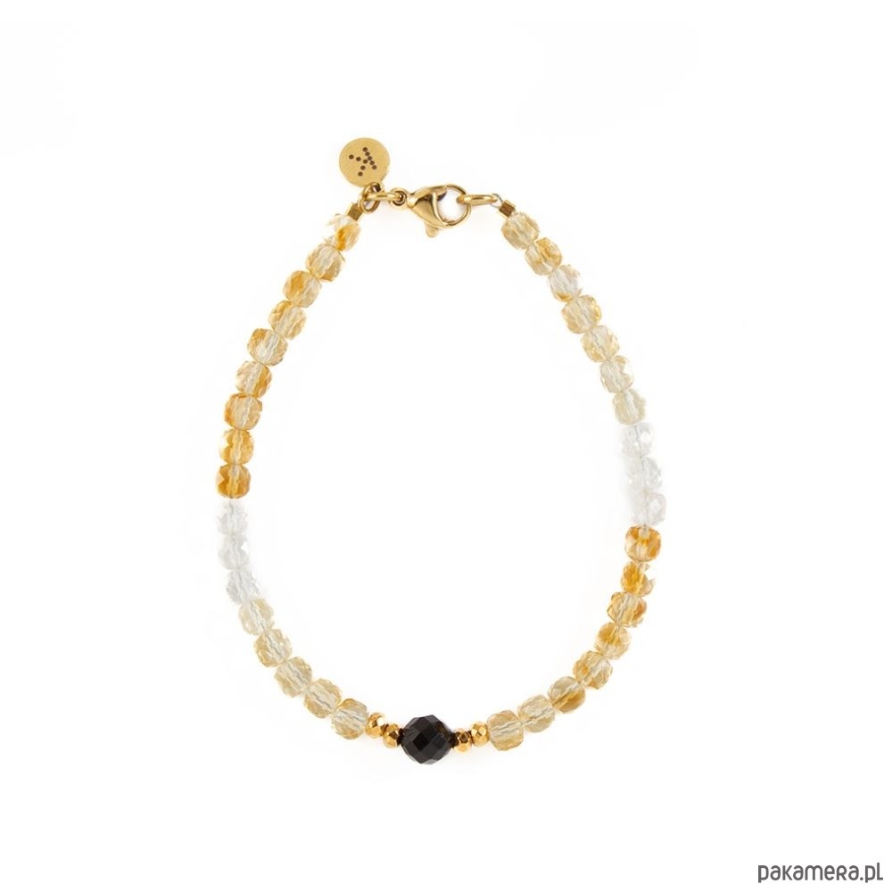 Ta bransoletka to połączenie światła i siły, które tworzy wyjątkową harmonię. Ręcznie wykonana z naturalnych kamieni Cytrynu, Turmalinu Czarnego i Hematytu w wersji złotej lub srebrnej, emanuje energią pozytywności, równowagi i elegancji. Subtelne przejście odcieni złota i bursztynu rozświetla całość, a czarny akcent dodaje charakteru i głębi.