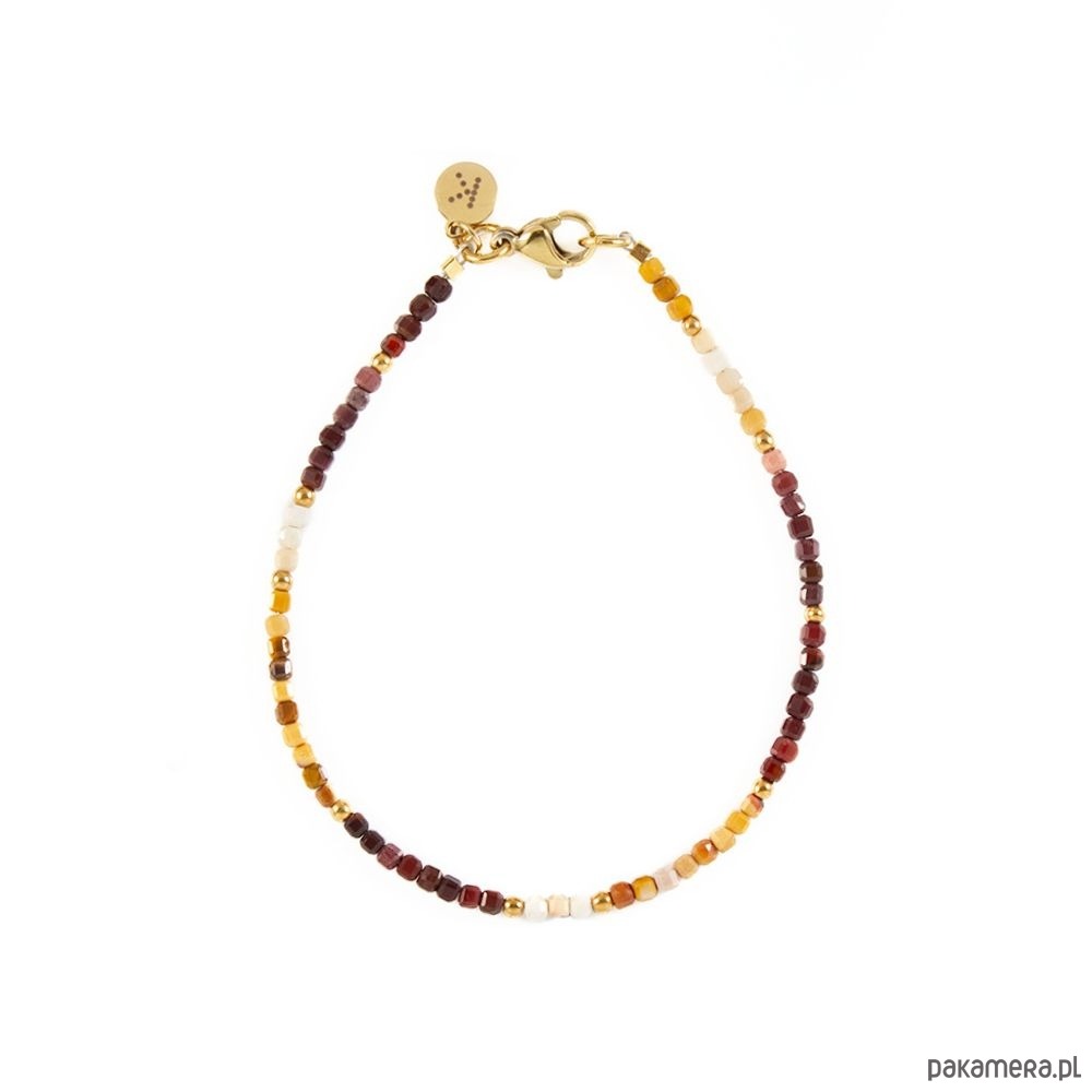 Ta bransoletka to zamknięte w formie biżuterii ciepło ziemi i promienie zachodzącego słońca. Ręcznie wykonana z naturalnych kamieni Mookaitu i Hematytu, dostępnego w wersji złotej lub srebrnej, zachwyca subtelną elegancją i naturalnym blaskiem. Ciepłe odcienie żółci, brązu i czerwieni tworzą harmonijną paletę inspirowaną barwami jesieni. Mookait to kamień równowagi, spokoju i życiowej energii. Pomaga zachować harmonię pomiędzy emocjami a rozsądkiem, dodaje odwagi i inspiruje do działania w zgodzie z intuicją. Jego kolory symbolizują ziemię i słońce – przypominają o sile natury, odnowie i pozytywnym nastawieniu do życia. Hematyt w wersji złotej lub srebrnej dodaje kompozycji elegancji i lekkości. Wzmacnia pewność siebie, stabilizuje emocje i pomaga zachować wewnętrzny spokój. Wersja złota wprowadza ciepły blask, natomiast srebrna podkreśla subtelność i nowoczesny charakter biżuterii. Bransoletka z Mookaitu i Hematytu to nie tylko ozdoba, ale także talizman dobrych wibracji. Doskonale sprawdzi się jako element codziennej stylizacji, dodając jej naturalnego uroku i wyjątkowej energii Znaczenie kamieni: Mookait to kamień antystresowy. Oczyszcza umysł, pomaga właściwie ocenić sytuację, a tym samym zrealizować postawione sobie cele. Hematyt to kamień wojowników. Silnie oczyszcza krew. Budzi radość do życia, dodaje odwagi i wiary we własne umiejętności. Każda bransoletka różni się nieco od siebie, ponieważ nie ma dwóch takich samych kamieni. Dla klienta wybieramy kamienie z wielką starannością, zawsze intuicyjnie.