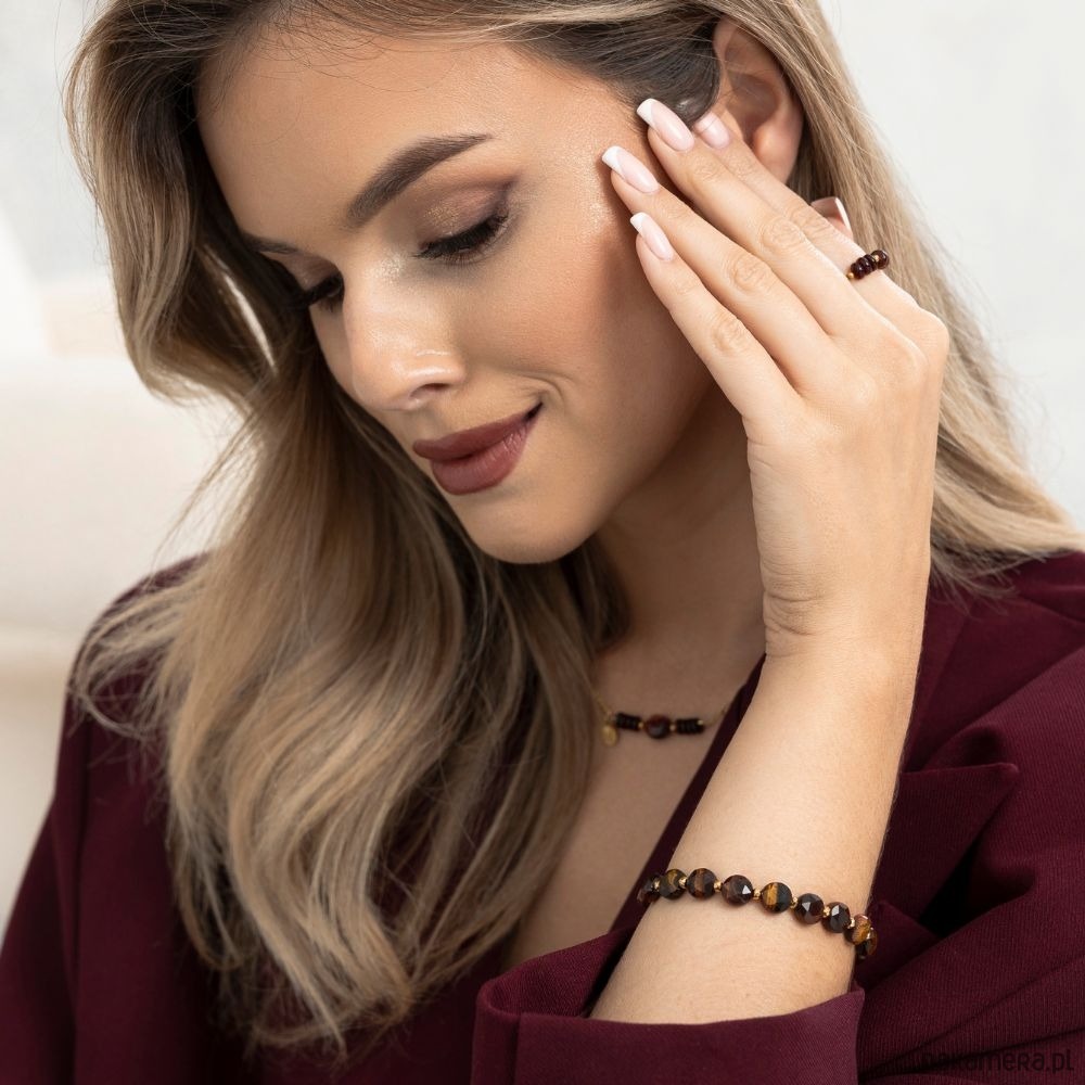 Ta bransoletka to połączenie elegancji i mocy naturalnych kamieni. Centralnym elementem jest Tygrysie Oko – kamień odwagi, pewności siebie i wewnętrznej siły. Jego charakterystyczny złoto-brązowy połysk symbolizuje energię działania, chroni przed negatywnymi wpływami i pomaga podejmować trafne decyzje.