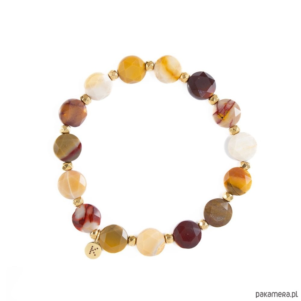 Mookait to odmiana jaspisu pochodząca z Australii, znana ze swoich energetycznych odcieni żółci, czerwieni i brązów. Uważany jest za kamień odwagi i siły życiowej – dodaje energii, inspiruje do działania i pomaga podejmować odważne decyzje. Noszenie Mokaitu sprzyja optymizmowi i otwartości na zmiany.