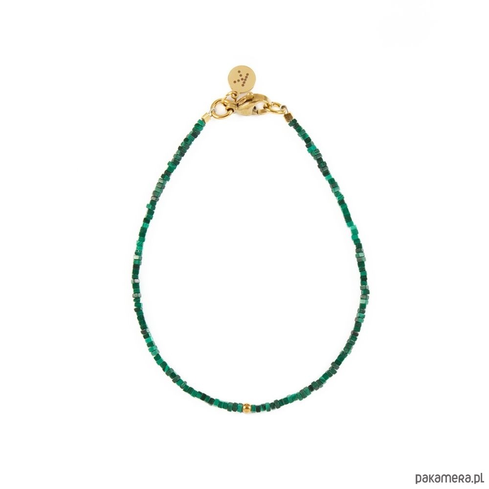 Subtelna bransoletka z naturalnych kamieni, w której główną rolę odgrywa Malachit – minerał o głębokiej, zielonej barwie, nazywany kamieniem transformacji i ochrony. Malachit wspiera rozwój, pomaga w podejmowaniu decyzji i przyciąga pozytywną energię.