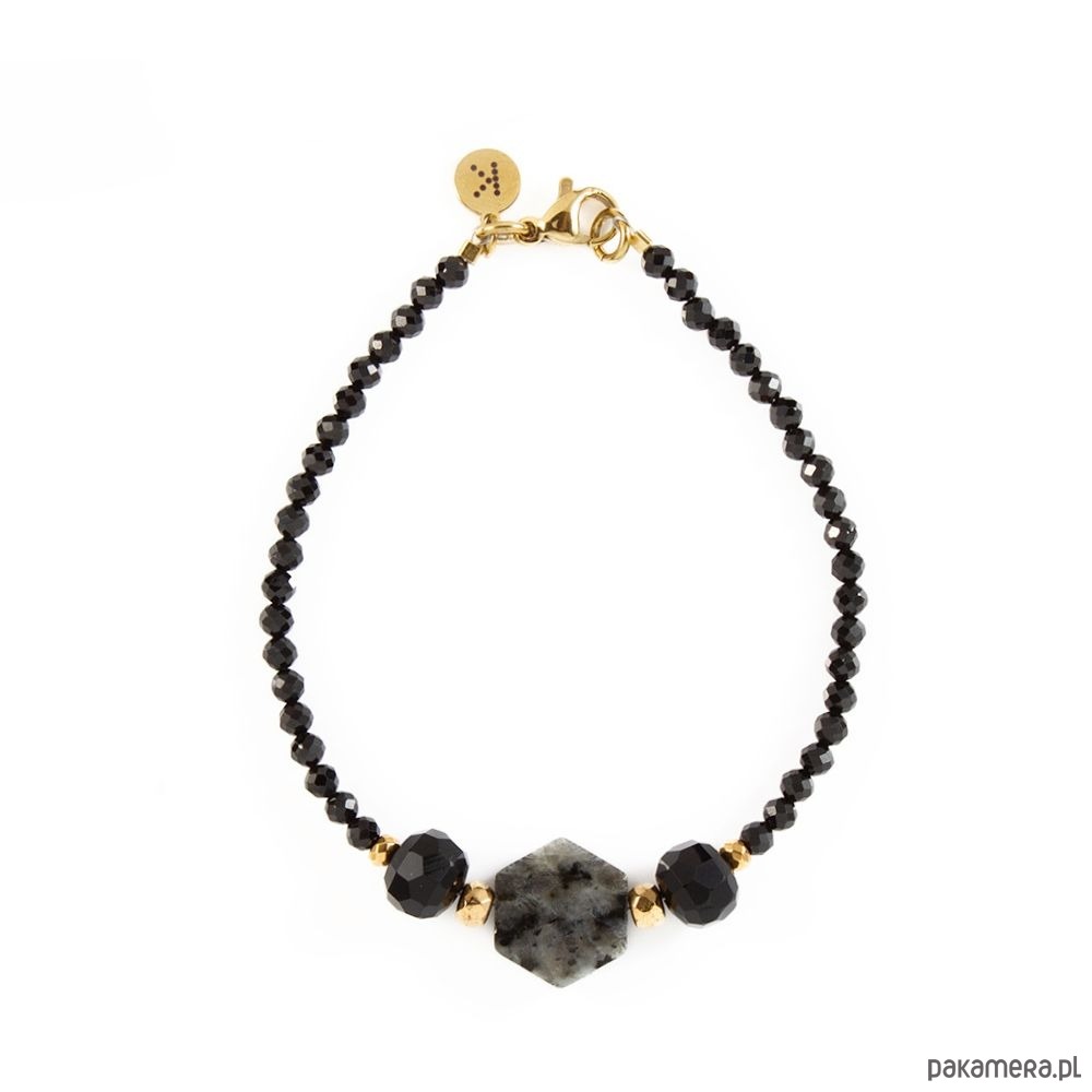 Znaczenie kamieni: Labradoryt to kamień mocy. Przynosi ulgę przy stanach niepokoju i depresji, zastępując je entuzjazmem i wiarą we własne możliwości.Hematyt to kamień wojowników. Silnie oczyszcza krew. Budzi radość do życia, dodaje odwagi i wiary we własne umiejętności.Turmalin czarny to kamień ochrony. Jest wyjątkowym kamieniem, który zapewnia ochronę przed tzw. złym okiem, czyli zazdrością, szkodliwymi intencjami oraz innymi rodzajami negatywnych wpływów, takimi jak obawy, strach i złość.Spinel to kamień witalności. Podwyższa poziom energii życiowej, dzięki czemu możemy łatwiej stawić czoła codziennym wyzwaniom.