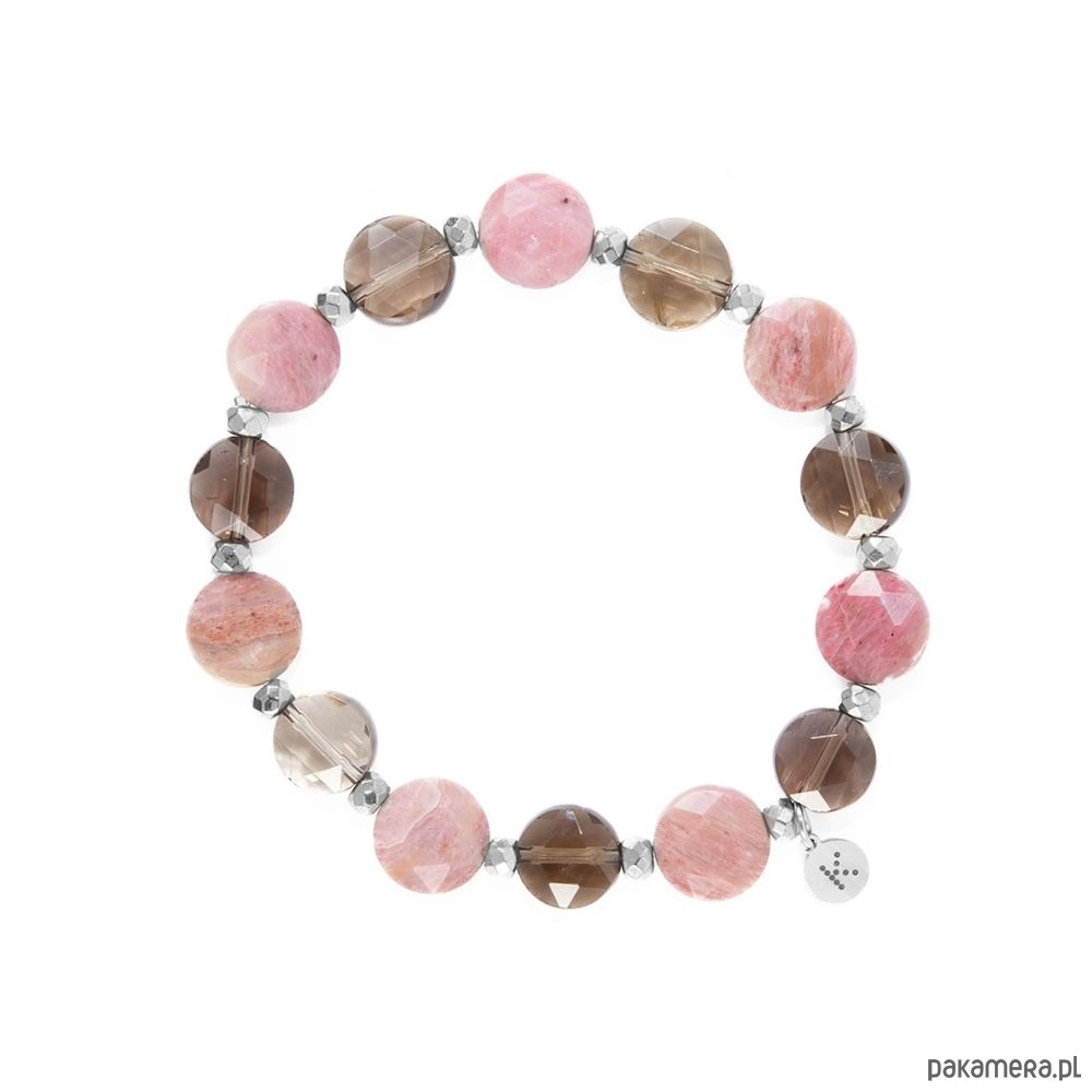 Ta bransoletka to więcej niż ozdoba – to amulet harmonii, który łączy emocjonalne ciepło z energią stabilizacji. Połączenie Rodonitu i Kwarcu Dymnego sprawia, że każdy jej element niesie ze sobą symboliczne znaczenie – różowy odcień kamieni przypomina o miłości, wdzięczności i delikatności, natomiast dymny brąz Kwarcu wnosi spokój, bezpieczeństwo i siłę. Dzięki wykończeniu Hematytami w wersji złotej lub srebrnej, bransoletka zyskuje elegancki blask, a zarazem zachowuje swój naturalny charakter. Idealna dla kobiet, które cenią połączenie natury z klasycznym pięknem i chcą otaczać się energią wspierającą równowagę ducha. Bransoletka doskonale komponuje się z innymi modelami z kamieni naturalnych – możesz nosić ją samodzielnie, tworząc minimalistyczny akcent, lub zestawić z naszyjnikiem z tej samej kolekcji, budując pełną, harmonijną stylizację. To biżuteria, która podkreśla kobiecą subtelność i przypomina, że prawdziwe piękno zawsze zaczyna się od wnętrza. Znaczenie kamieni: Hematyt to kamień wojowników. Silnie oczyszcza krew. Budzi radość do życia, dodaje odwagi i wiary we własne umiejętności. Rodonit to kamień samorealizacji. Pomaga dostrzec własne zalety. Wspiera w samorozwoju oraz realizacji zamierzonych celów. Kwarc dymny to kamień zmian. Szczególnie polecany dla osób, którym trudno jest dokonywać zmian w życiu w obawie przed nieznanym. Każda bransoletka różni się nieco od siebie, ponieważ nie ma dwóch takich samych kamieni. Dla klienta wybieramy kamienie z wielką starannością, zawsze intuicyjnie. Wymiary: Kamienie: Hematyt/Rodonit/Kwarc Dymny Wielkość kamieni: 4mm/10mm/8mm Blaszka z logo: 6mm Materiał: antyalergiczna stal chirurgiczna