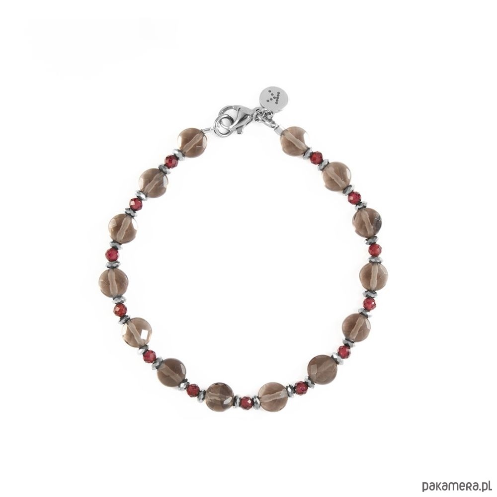 Kwarc Dymny to kamień równowagi i wewnętrznego spokoju. Pomaga wyciszyć emocje, wprowadza stabilność i chroni przed negatywną energią. Granat jest symbolem pasji i odwagi – pobudza energię życiową, inspiruje do działania i dodaje pewności siebie. Hematyt, dostępny w wersji złotej lub srebrnej, dopełnia całość eleganckim blaskiem metalu, wzmacniając koncentrację i poczucie stabilności.