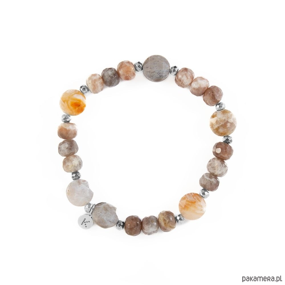 Bransoletka wykonana z naturalnych kamieni, które łączą w sobie elegancję i symbolikę harmonii, energii i stabilizacji. Kwarc Lodolit, znany również jako „kwarc marzeń”, to kamień harmonii, transformacji i duchowej głębi. Pomaga uwolnić się od stresu i blokad emocjonalnych, wspiera wewnętrzny rozwój oraz ułatwia realizację celów i marzeń. Jego unikalne, naturalne inkluzje tworzą niepowtarzalne wzory, które przypominają miniaturowe krajobrazy – symbol połączenia z naturą i spokojem umysłu. Kamień Słoneczny emanuje ciepłym blaskiem i pozytywną energią. Symbolizuje radość, optymizm i siłę życiową, wspierając odwagę oraz otwierając na nowe możliwości. Całość uzupełnia Hematyt, dostępny w wersji złotej lub srebrnej. To kamień stabilizacji, który wzmacnia koncentrację, dodaje pewności siebie i nadaje bransoletce elegancki, nowoczesny charakter. Bransoletka z Kwarcu Lodolitu, Kamienia Słonecznego i Hematytu to nie tylko wyjątkowa ozdoba, ale także osobisty talizman równowagi, energii i siły – idealny wybór zarówno na co dzień, jak i na szczególne okazje. Znaczenie kamieni: Kamień słoneczny to kamień życia. Pomaga przezwyciężyć lęki, niepewność, brak wiary w siebie i łagodzi depresję. Daje siłę i energię do życia. Hematyt to kamień wojowników. Silnie oczyszcza krew. Budzi radość do życia, dodaje odwagi i wiary we własne umiejętności.Kwarc Lodolit to kamień manifestacji, wizualizacji i duchowej harmonii, symbolizujący moc tworzenia własnej rzeczywistości. Jego energia pomaga skupić myśli i intencje, dzięki czemu pragnienia mogą nabrać realnego kształtu. Uczy, że każda zmiana zaczyna się od wewnętrznej wizji i wiary w siebie.Każda bransoletka różni się nieco od siebie, ponieważ nie ma dwóch takich samych kamieni. Dla klienta wybieramy kamienie z wielką starannością, zawsze intuicyjnie. Wymiary: Kamienie: Hematyt/Kamień Słoneczny/Kwarc Lodolit Wielkość kamieni: 4mm/8x6mm/10mm Blaszka z logo: 6mm Materiał: antyalergiczna stal chirurgiczna