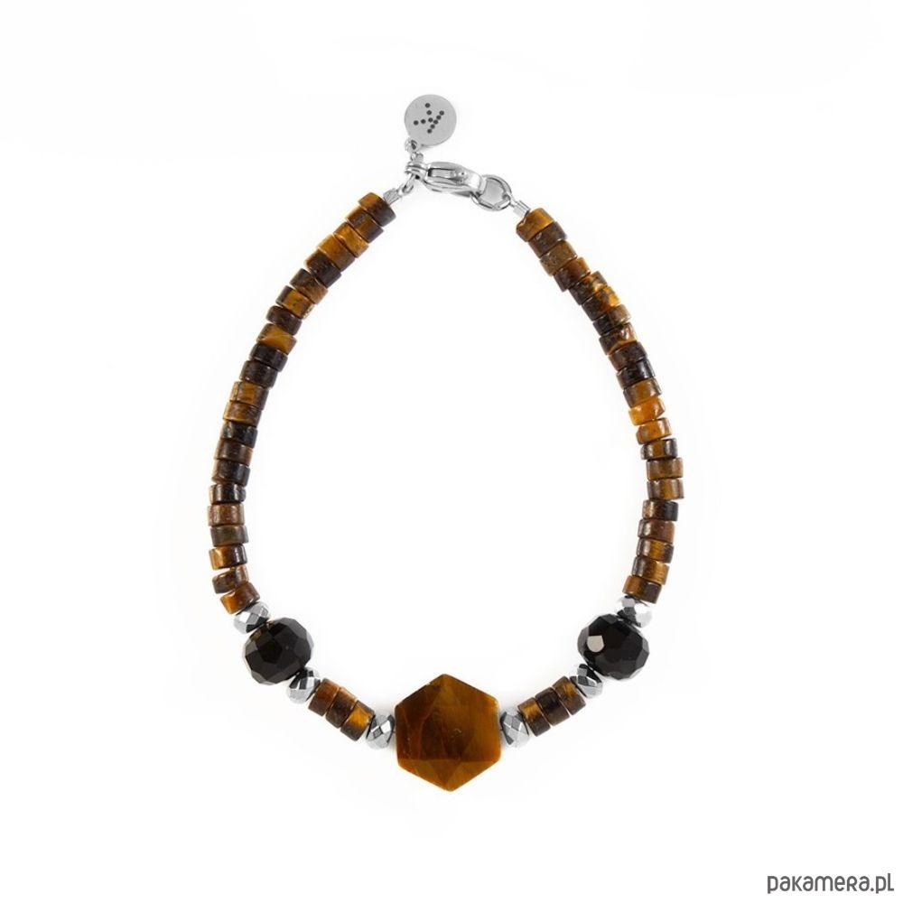 Znaczenie kamieni: Turmalin czarny to kamień ochrony. Jest wyjątkowym kamieniem, który zapewnia ochronę przed tzw. złym okiem, czyli zazdrością, szkodliwymi intencjami oraz innymi rodzajami negatywnych wpływów, takimi jak obawy, strach i złość.Hematyt to kamień wojowników. Silnie oczyszcza krew. Budzi radość do życia, dodaje odwagi i wiary we własne umiejętności.Tygrysie oko to kamień odwagi. Dodaje odwagi w wyrażaniu własnego zdania, wzmacnia wolę przetrwania i dążenia do sukcesu.