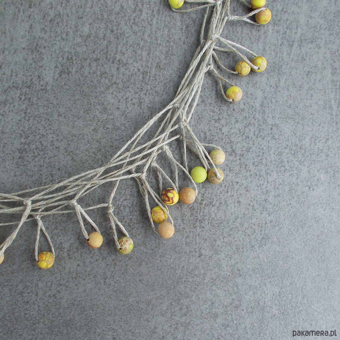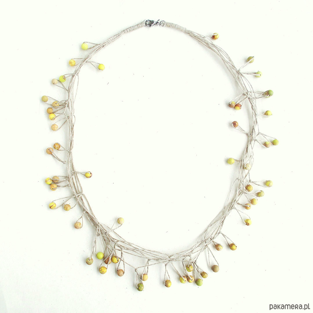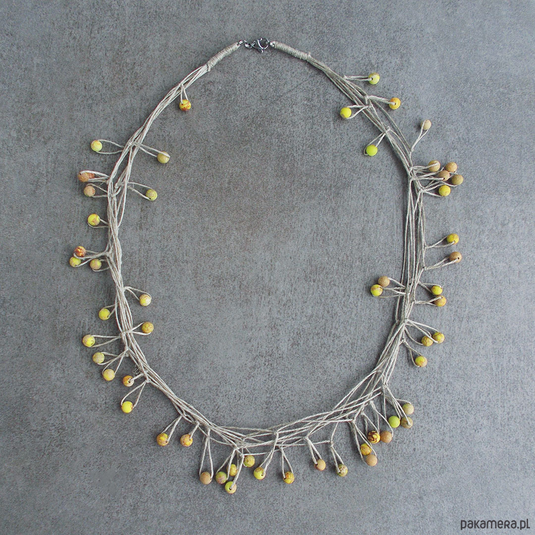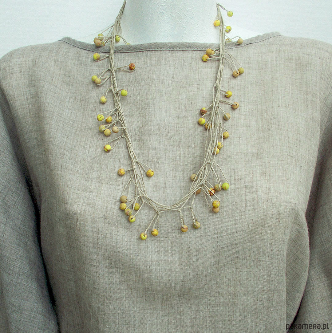 Oryginalny, lekki, fantazyjny naszyjnik na bazie naturalnego lnu