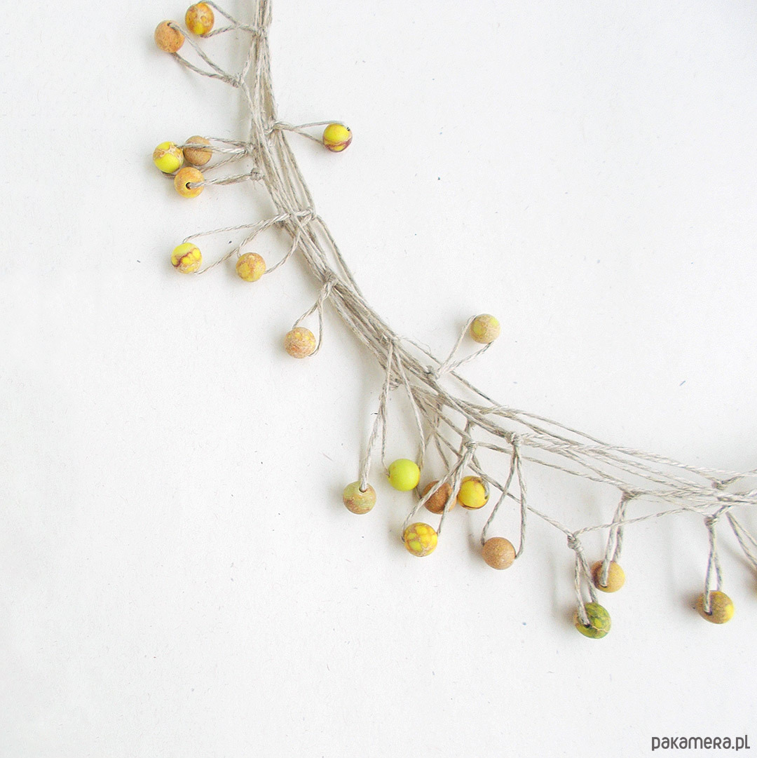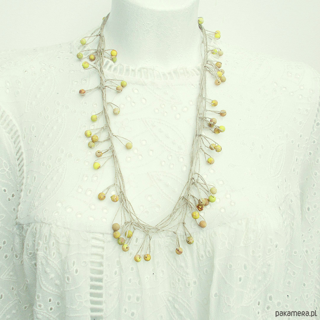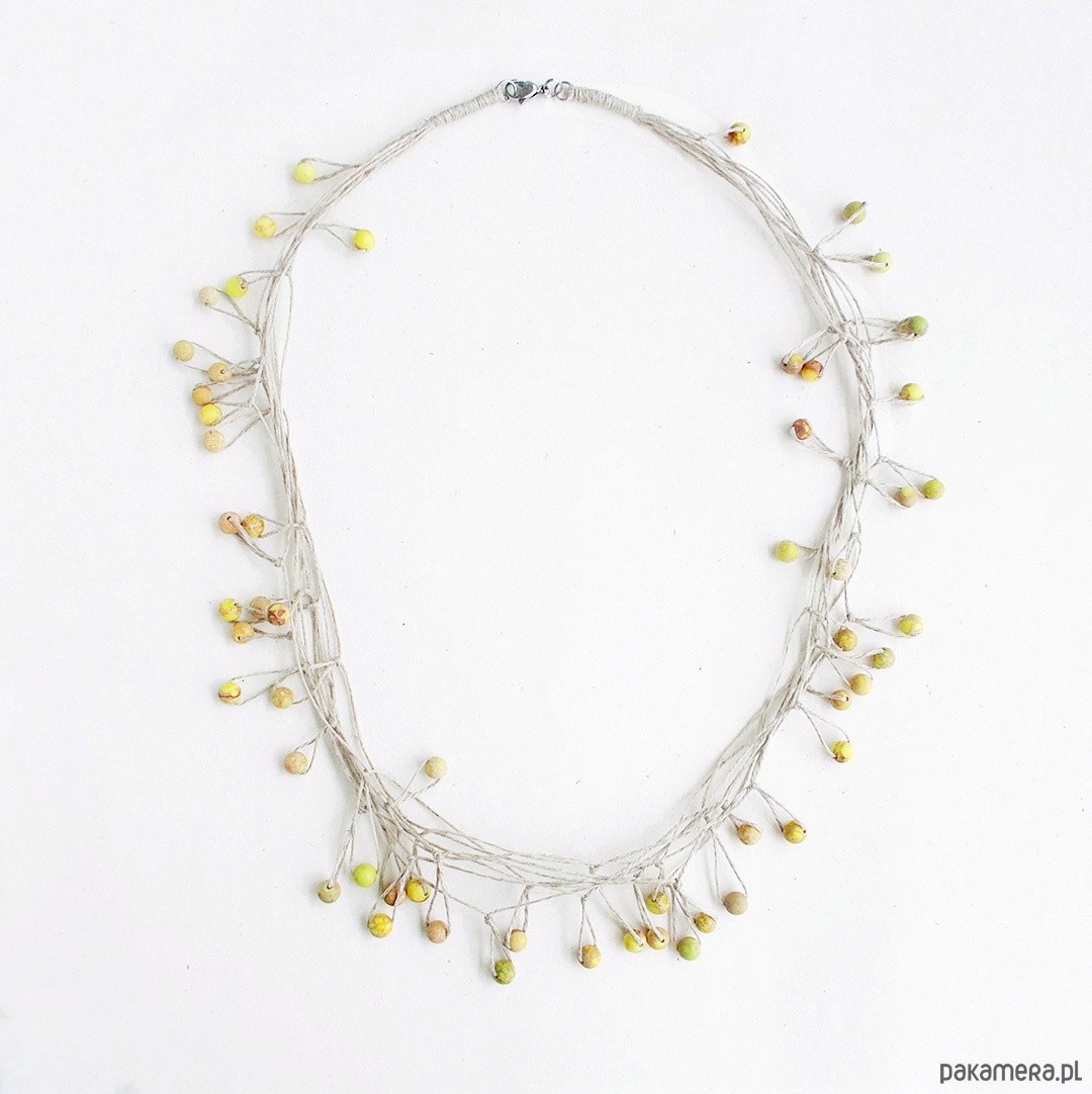 Oryginalny, lekki, fantazyjny naszyjnik na bazie naturalnego lnu